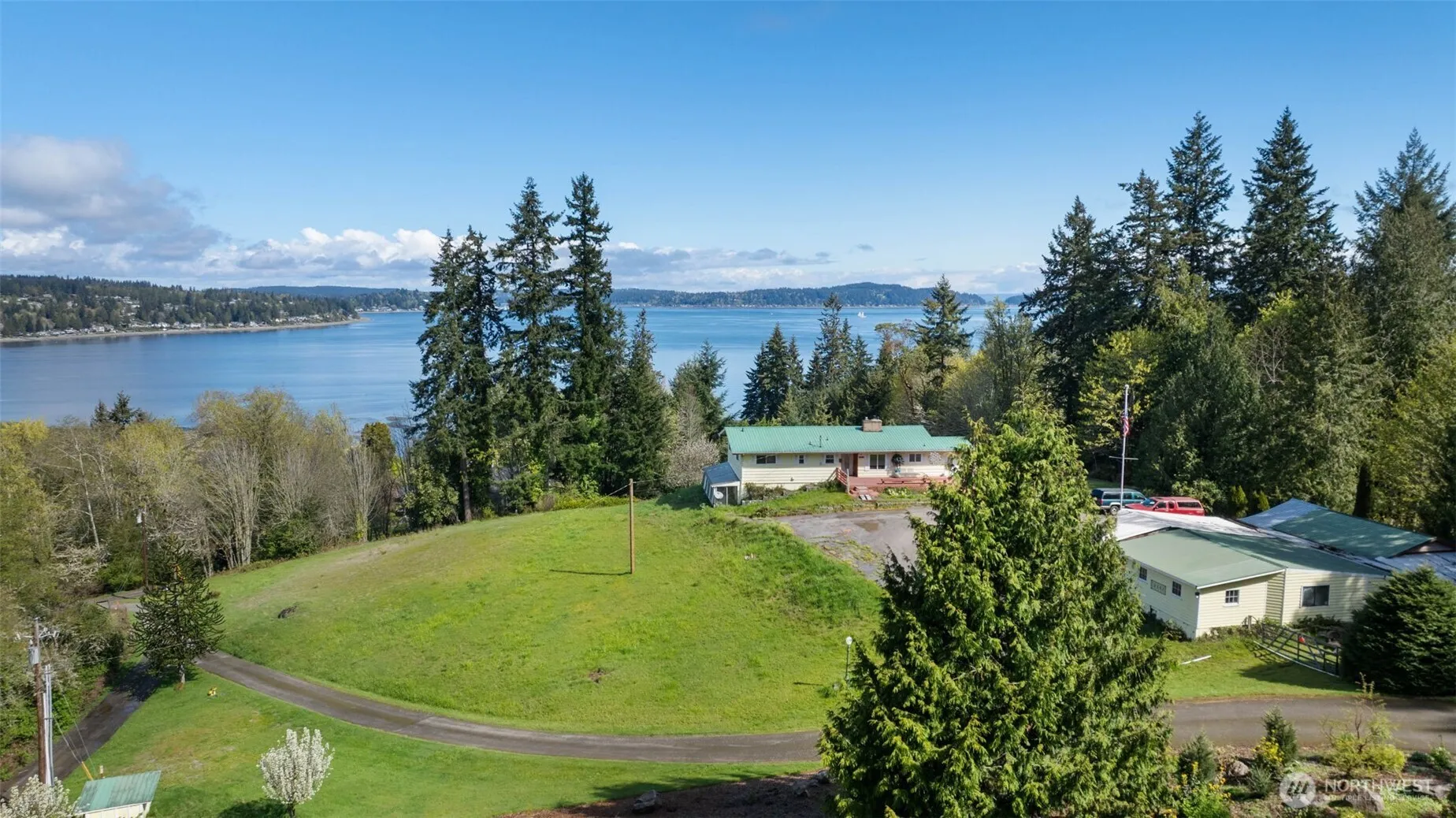 VIEW Property! Perched at the top of a private lane, this beautiful home captures sweeping views of the Sound, offering a sense of serenity just minutes from the Southworth ferry. Expansive windows artfully frame the ever-changing PNW landscape, creating an effortless connection between indoors & out. The kitchen features butcher block countertops, double ovens, and updated appliances—an inviting space for both everyday living and elevated entertaining. Fresh interior paint, new carpeting, and refinished hardwood floors bring warmth throughout. Both bathrooms have been tastefully updated, including an expanded second bath designed with comfort in mind. A versatile lower level offers additional space for a media room, studio, or private retreat. Outdoors, a full-width deck invites you to unwind while taking in the views, complemented by a covered gazebo, fire pit patio, and thoughtfully landscaped grounds with rose garden, fruit trees, and greenhouse for the gardener. Every detail has been considered—from restored cedar siding and new gutters to improved drainage systems, custom fencing with solar lighting, and gated entry. Two covered carports and generous parking, this property offers both function and flexibility. A truly special offering where privacy, thoughtful upgrades, and timeless Northwest beauty come together in perfect balance.