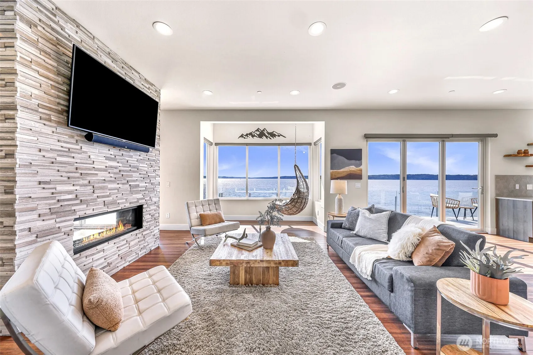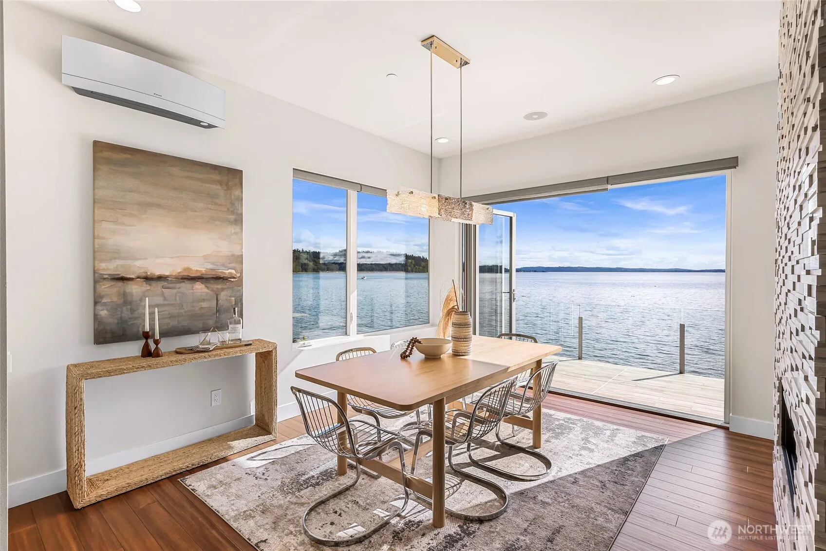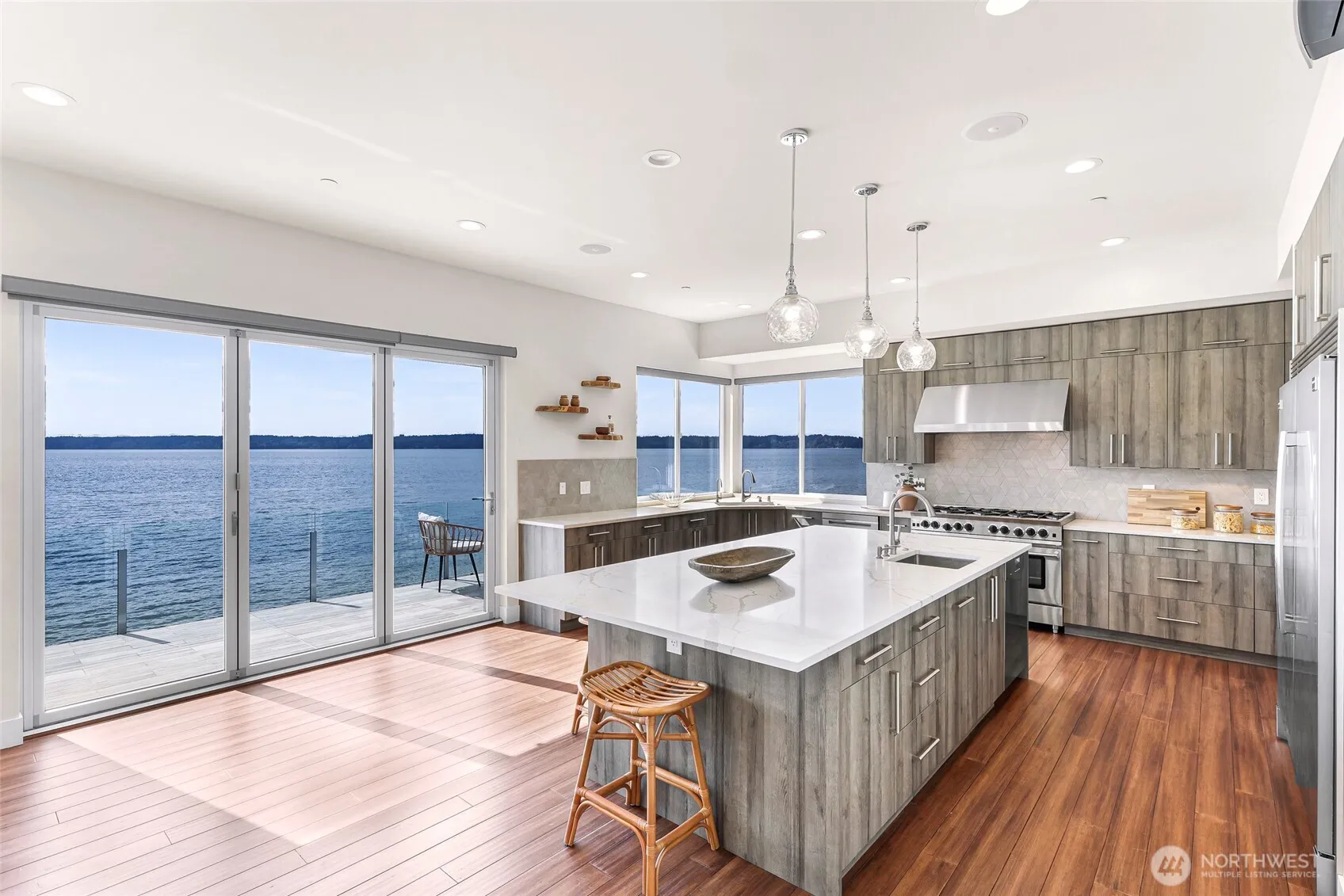 Experience the pinnacle of refined coastal elegance in this rare waterfront masterpiece. Nestled within the highly coveted Shorewood on the Sound’s gated 12-home enclave, this masterpiece offers an unparalleled connection to the PNW landscape. With 62 feet of pristine low-bank shoreline and a semi-private boat ramp, your transition from morning coffee to the shimmering waters of Puget Sound is effortless. Step inside to a world of architectural brilliance where NanaWall systems dissolve the boundaries between the sophisticated interior and the breathtaking vistas outside. The heart of the home is a culinary sanctuary, featuring a premium Bluestar range, dual dishwashers, and double sinks, perfect for hosting grand soirées or intimate sunset dinners. Engineered for ultimate flexibility and extremely energy efficient, the entire 1,000 sq. ft. first floor, comprising three spacious bedrooms, functions as an optional bonus wing. Whether utilized as a guest sanctuary or kept as quiet “bonus” space, every room features individual heat exchangers, allowing you to curate the climate and energy use of each square inch of the home. From the soundproofed office and elevator-ready design to the heated bathroom floors and expansive garage with EV charging, no detail has been overlooked. This is a residence that scales to your lifestyle: a waterfront estate with the soul and efficiency of a modern retreat. Welcome home to the future of luxury.