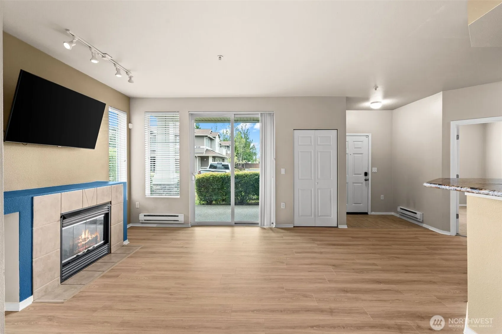 Welcome home to this charming 2 bedroom, 2 bath condo in the highly sought-after Lakeland community! This ground-floor unit offers 1,013 square feet of easy, single-level living with all the right touches and none of the stairs. Step inside and enjoy the warm, inviting feel of the cozy gas fireplace, the perfect centerpiece of the living space during those chilly Pacific Northwest evenings. The kitchen shines with granite countertops and plenty of room to cook and entertain. Newer floors flow throughout, giving the home a fresh, move-in ready feel from the moment you walk in! The spacious primary suite is a true retreat with an attached bath and a walk-in closet that offers all the storage you need. The second bedroom and additional full bath make this the ideal layout for guests, a home office, or roommates. Step outside to your private outdoor patio, a great spot to sip your morning coffee or unwind after a long day. One of the biggest perks of this unit is the dedicated one-car detached garage located right outside your front door, offering both convenience and secure parking. Lakeland is known for its friendly vibe and beautiful parks, and this condo is just minutes from tons of shopping, dining, and easy freeway access. Whether you’re a first-time buyer, downsizing, or searching for the perfect low-maintenance home, this one checks all the boxes. Don’t miss out on this beauty!