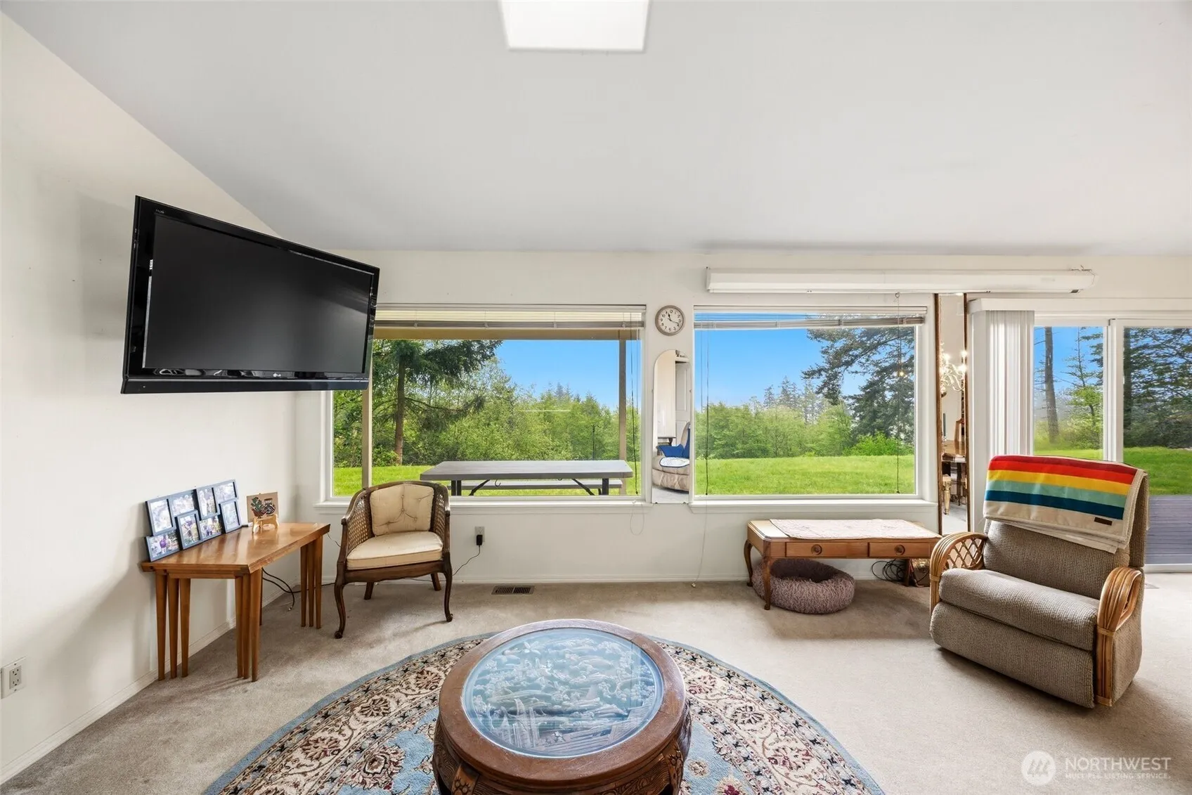 Peaceful country living on 5 acres with stunning views of the Cascades! This well-designed rambler offers easy one-level living with an open kitchen, dining, and living area featuring vaulted ceilings. The kitchen includes abundant cabinet storage, generous counter space, and a convenient island. Utility room with sink and storage cabinets adds everyday functionality. Spacious primary bedroom with walk-in closet and private ¾ bath. Outdoor features include a brand-new roof and gutters, wiring for a generator, and a storage shed. Relax on the deck with a cup of coffee and watch the sunrise. Just 5 minutes from the golf course. Enjoy space, comfort, and beautiful surroundings all in one property!