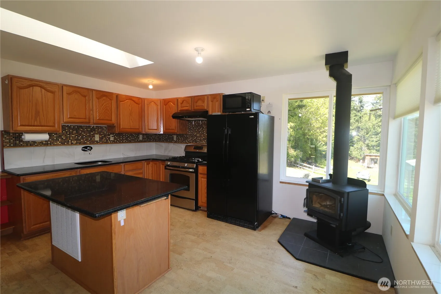 Amazing Views of Water and Mountain from Kitchen, Living Room and Office/Reading Nook!!! Bright 2 Bedroom 1.25 Bath Home on Camano Island boasts a living room with tons of windows, eat in kitchen with granite countertops and stainless steel appliances. Perched on top of a hill on a 3 plus acre lot offering absolute privacy and picturesque views of Triangle Cove and Three Fingers Mountain from all living areas. Home is ideal for peace and relaxation with triple pane windows throughout, cork flooring, tankless water heater, a covered front porch, and a balcony off the kitchen plumbed with propane and water. Walk downstairs to a HUGE 1,294 square foot attached shop with 17 foot ceiling. Shop is equipped with a half bathroom, 220 Volt outlets for Fast Car Charger and Heavy Equipment, oversized garage door for RV Parking or large trucks, air compressor and a 1 ton lift. The shop is large enough to have both RV Parking and a workshop. Third detached garage is fully insulated, ideal for an extra car or a gym. Quiet neighborhood with easy access to shopping, restaurants and all conveniences.