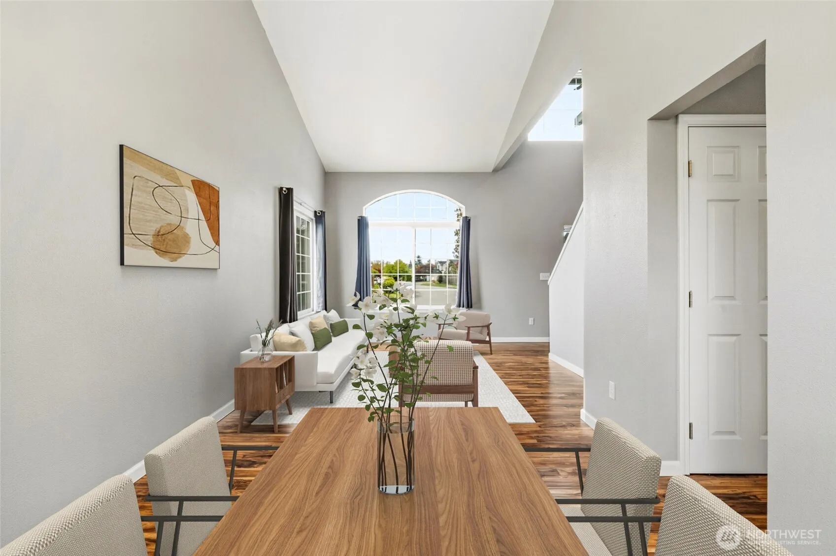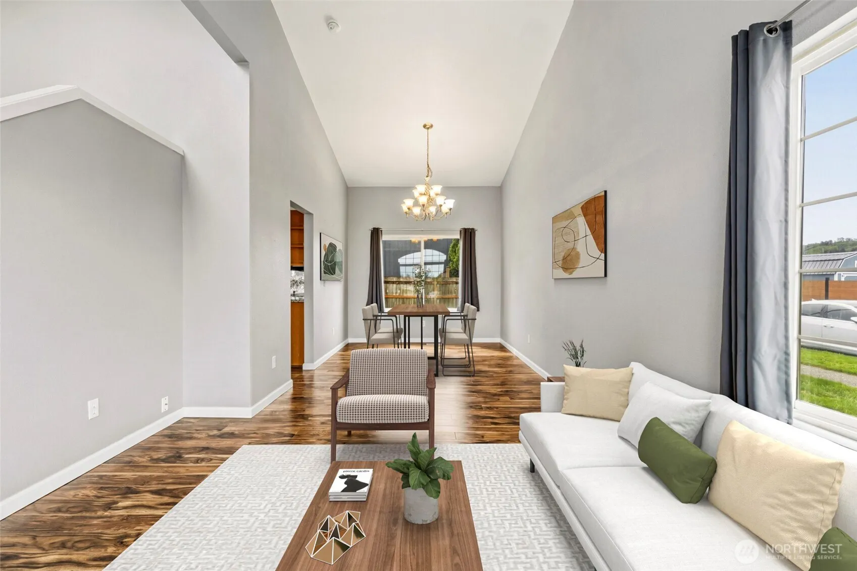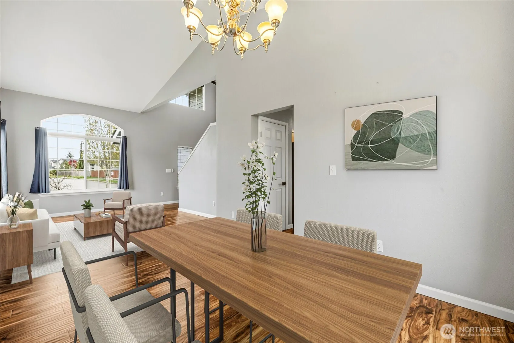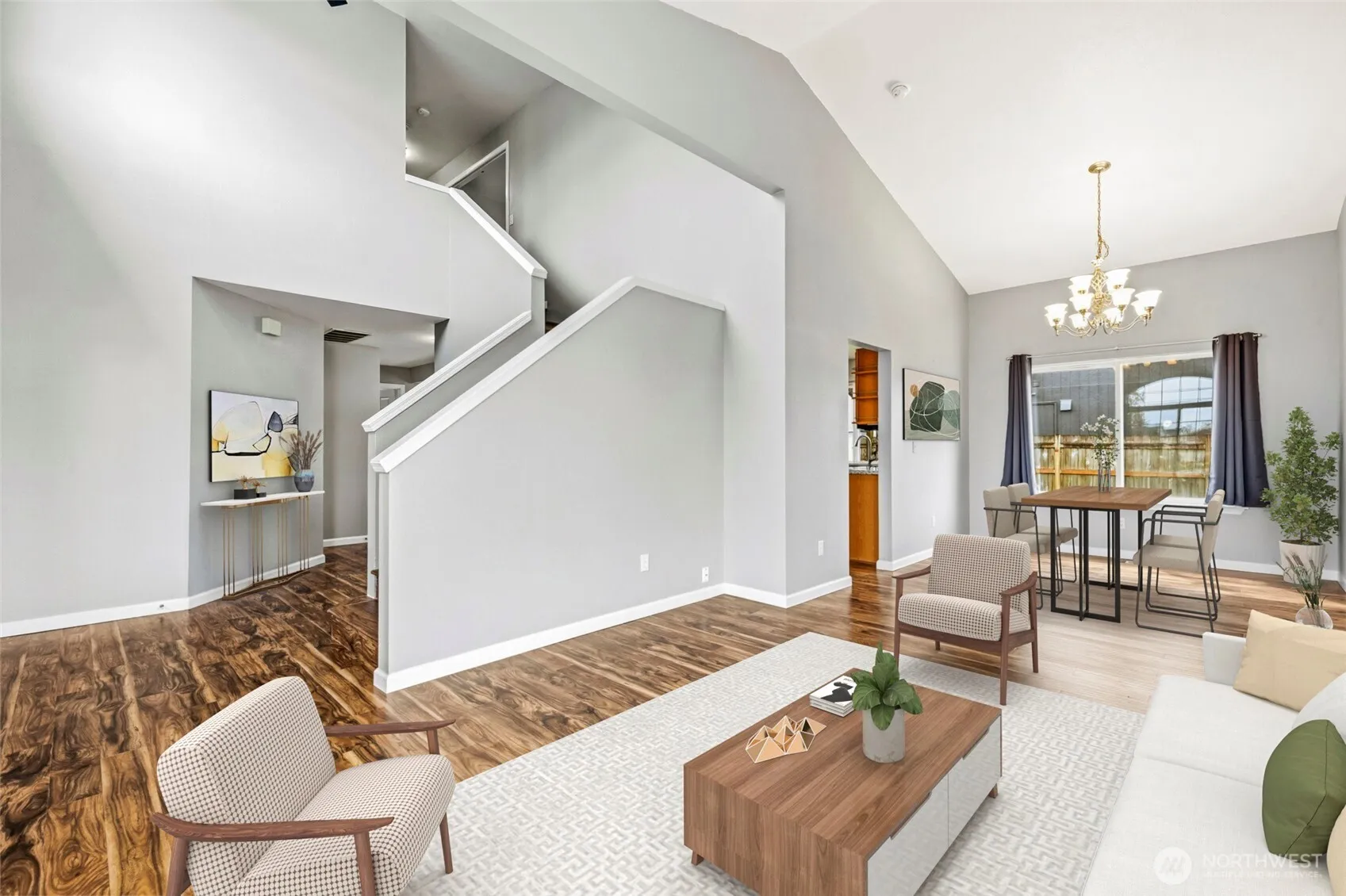 Situated on a prime corner lot in Monroe’s sought-after Fryelands neighborhood, this 4-bedroom, 2.5-bath home is designed for comfortable living in a community known for its welcoming atmosphere and easy walkability. An inviting entry opens to formal living and dining rooms with soaring vaulted ceilings, creating a bright and airy first impression. The open-concept family room with gas fireplace is ideal for hosting and everyday living. Kitchen features slab granite counters, sleek stainless steel appliances, and ample cabinetry. The primary suite is a peaceful retreat with French doors, a private bath, walk-in closet, and a VIEW deck overlooking Lords Lake and stunning sunsets. Also upstairs are three spacious bedrooms, a full bath, and a large linen closet. The generous, fully fenced backyard boasts sunny, south-facing exposure and a patio for outdoor enjoyment. Additional highlights include beautiful Acacia engineered wood floors, updated interior doors & trims, AC/heat pump, EV charging, and a brand-new water heater. The popular Lake Tye Park is just a short stroll away, offering a beach, boat launch, picnic shelters, skate park, playground, scenic lake trail, sports courts, and year-round community events. Convenient access to Downtown Monroe, major highways, schools, and everyday amenities.