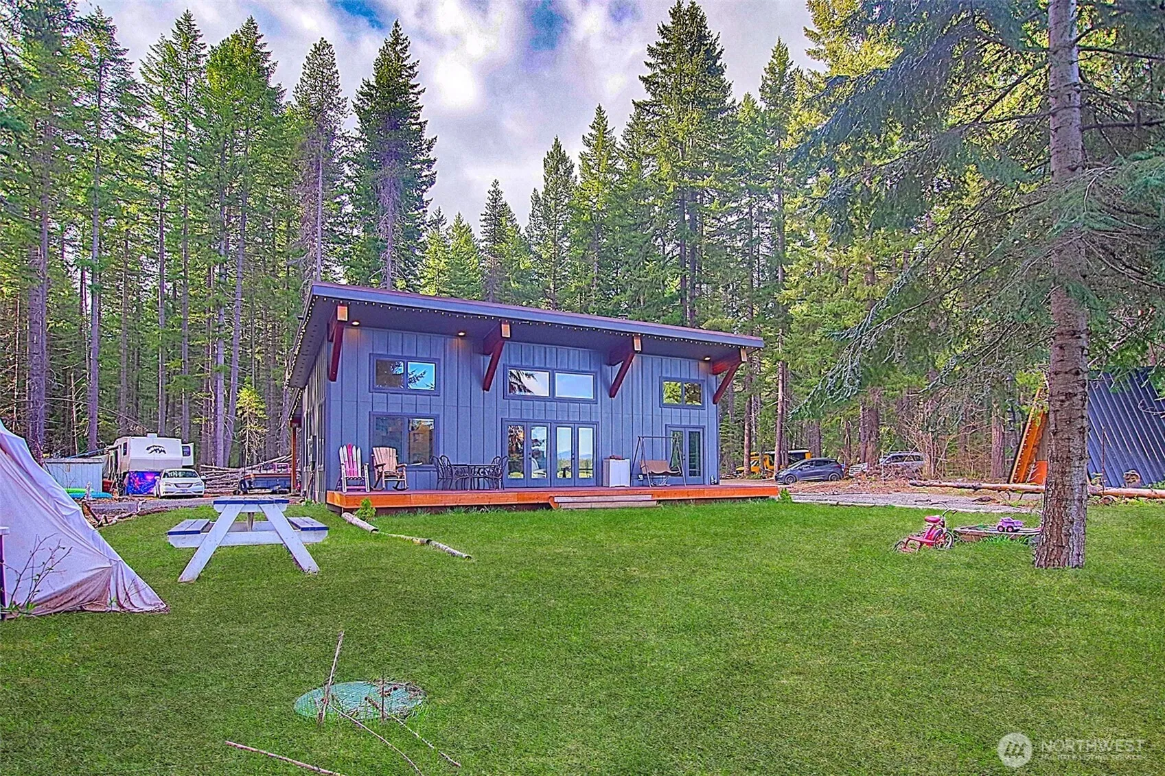 This 2-bed, 1-bath cabin sits at the very end of the small Easton airstrip, offering a unique vantage point looking straight down the runway. Surrounded by forest and recreation, it’s an ideal basecamp for 4-wheeling, biking, hiking, and snowmobiling, with direct access to state land bordering the property on the east. A rare opportunity to own a true cabin-in-the-woods retreat, the property also includes a 24′ x 50′ concrete pad with a steel building package on site and ready to install-perfect for a future shop, garage, or storage for all your gear. Matches colors on the house. Small A-Frame dry cabin can be used for guests or storage. Close to lakes, rivers, and endless trail systems, this location is a dream for outdoor enthusiasts looking for privacy, adventure, and room to grow. Less than an hour to Seattle /Bellevue area. Most things will stay with the sale. Includes and EV-Charging station in carport.
