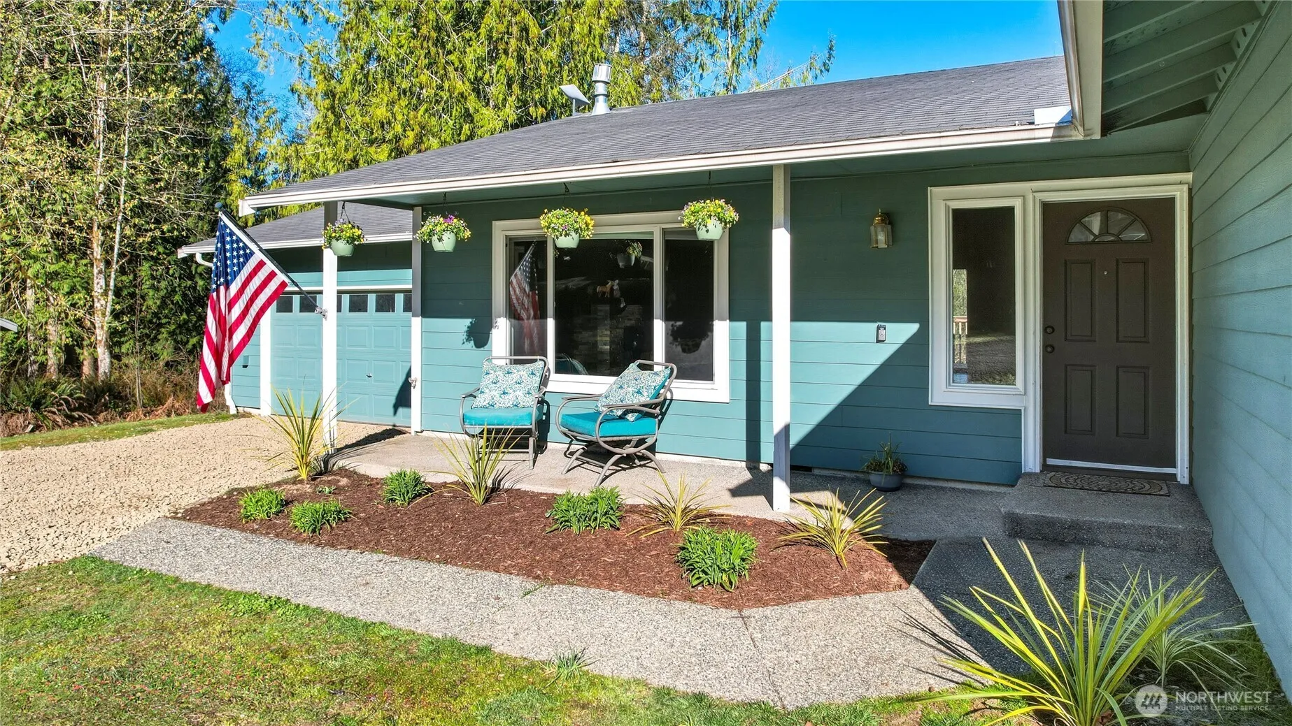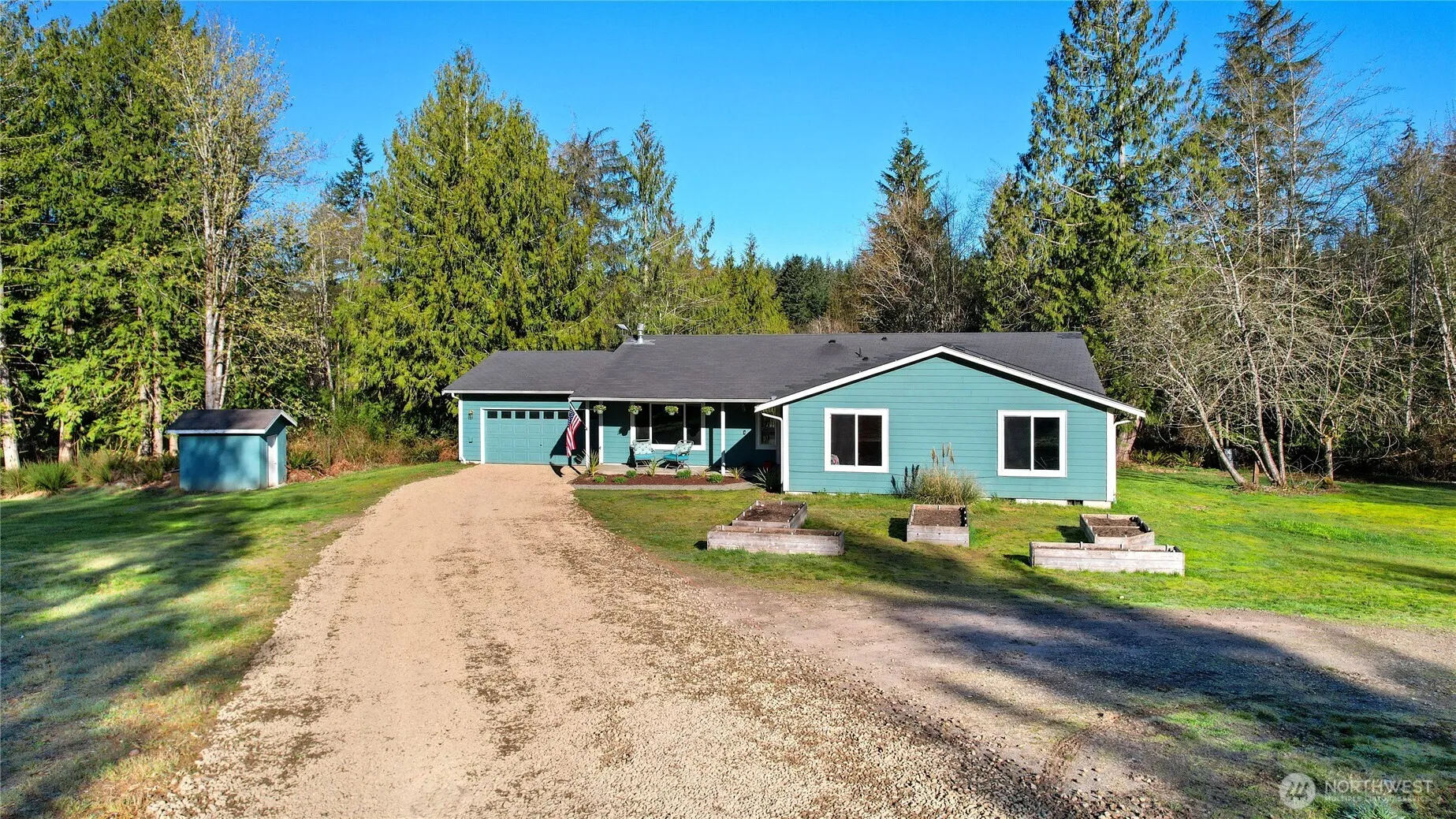Discover your private retreat in the scenic hamlet of Seabeck! Nestled on over 8 beautiful acres, this one-level, 3-bedroom home offers the perfect blend of comfort, space, and tranquility. Welcomed by the charming covered front porch, enter into the large open floor plan featuring vaulted ceilings and a striking fireplace that anchors the inviting great room. The spacious kitchen boasts abundant cabinetry, stainless steel appliances, granite slab counters, a generous eating counter island with bar seating, and a convenient walk-in pantry/laundry room just steps away. The primary suite includes an ensuite bathroom for added privacy and comfort.Step outside to a fenced backyard ideal for keeping pets secure, plus expansive open space with excellent sun exposure — a blank canvas for gardening, recreation, or simply enjoying peaceful surroundings. With plenty of room for RV or boat parking, a 2-car garage, and a pre-inspection already completed, this property is ready for its next chapter. Experience country living at its finest with room to grow just over the hill from Silverdale and Bremerton for an easy commute to PSNS, Bangor, ferry, shopping, and services.