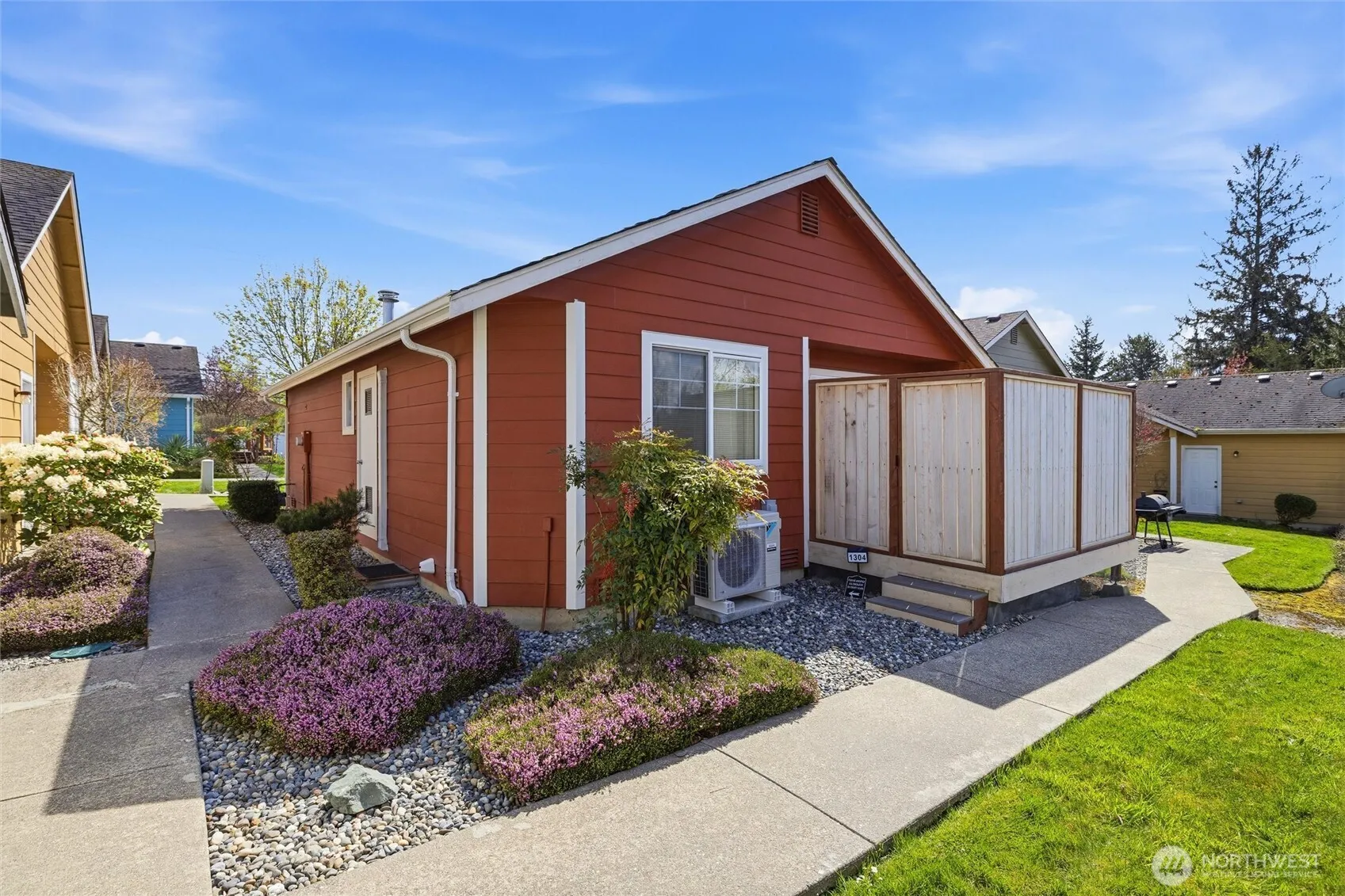 Welcome to Wildflower Way-your opportunity to own a charming, move-in-ready home! This well-maintained 876 sq. ft. residence offers 2 bedrooms and 1 bathroom, featuring numerous upgrades and a prime location near scenic walking trails and a brand-new city park. Step inside to an open floor plan that creates a bright, spacious feel throughout the home. The kitchen is thoughtfully updated with stainless-steel appliances, a large island, and an oversized stainless-steel farmhouse-style sink-perfect for cooking and entertaining. Through the sliding glass door, enjoy a composite deck with a privacy fence, ideal for relaxing or hosting guests. The primary bedroom connects directly to the bathroom, while the second bedroom is perfect for guests, a home office, or flex space. Additional upgrades include a newer hot water tank, ceiling fans, an extended front landing with low-rise stairs, and an efficient ductless heat pump system to keep you cool all summer long. The HOA takes care of landscaping, detached garage maintenance, and common areas giving you more time to enjoy your weekends and your new home. Pre-Inspected & ready to go!