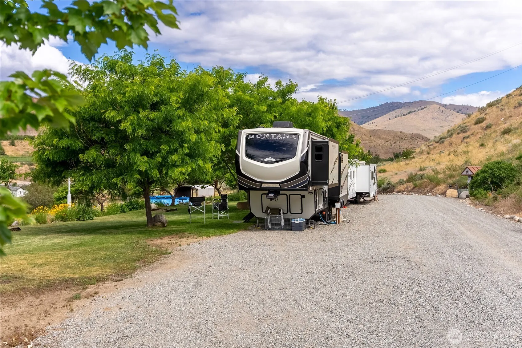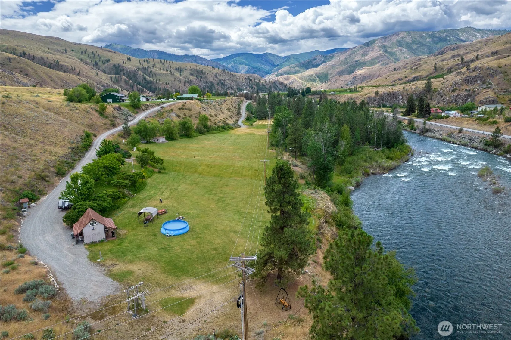 With Over 800 feet of Methow Riverfront, this 7+ acre paradise features a low beach perfect for fishing, swimming, rafting & cooling off on hot days. Close to Lake Chelan, Columbia River & Methow Valley Recreation areas. Charming 1-bedroom tiny cabin includes a kitchen, bathroom bed/loft, making it ideal for a hunting or a fishing homestead. 50 & 30 amp full hookups for RV’s is well-equipped for visitors & entertaining. Irrigation rights keep the sprawling lawns green & lush. Perfect for games, recreation & BBQ’s. Japanese Ueki style landscaping is delightful. Peach, pear, apple, cherry & apricot trees provide abundant fruit. Your next adventure is ready w/10 gpm well, power & 3 bd septic system. Keep as a developed glamping site or build your dream home on an upper Bld site