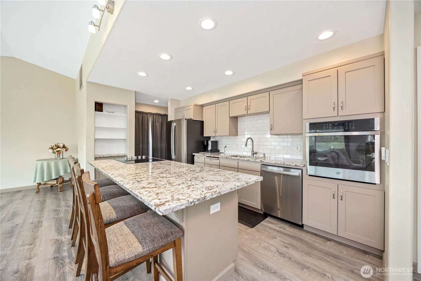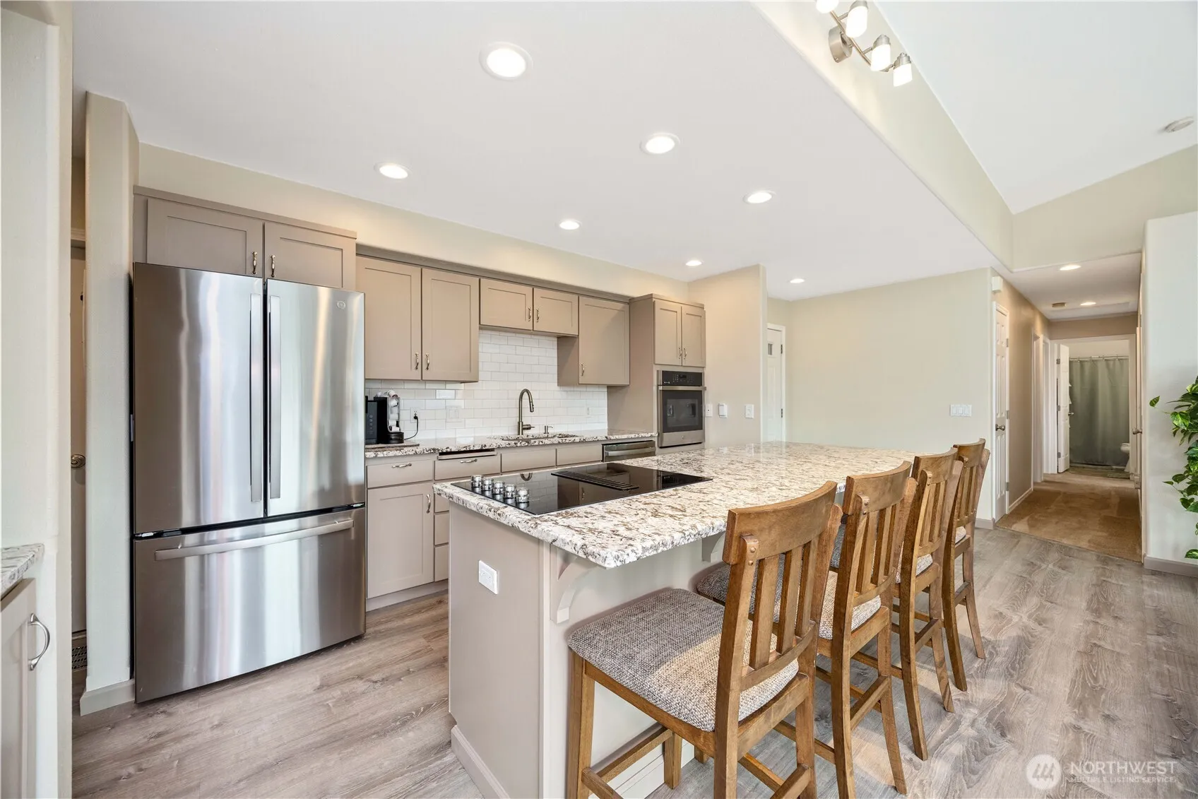 Enjoy easy living in this beautifully updated one-level home featuring 3 bedrooms and 1.75 bathrooms, just shy of 1,400 sq ft. Recent improvements include fresh interior paint, new blinds, LVP flooring, and a brand-new roof for added peace of mind. The kitchen has been refreshed with new countertops and select new appliances, offering a clean, modern feel. Outside, the property shines with attractive, low-maintenance landscaping, automatic sprinklers, a fully fenced yard, and a storage shed. Relax or entertain on the Trex deck while taking in sweeping views of the Columbia River and Goat Mountain. A spacious 2-car garage adds convenience, while the single-level layout provides comfortable, accessible living. Move-in ready and thoughtfully updated, this home combines functionality, low maintenance, and incredible views in one inviting package.