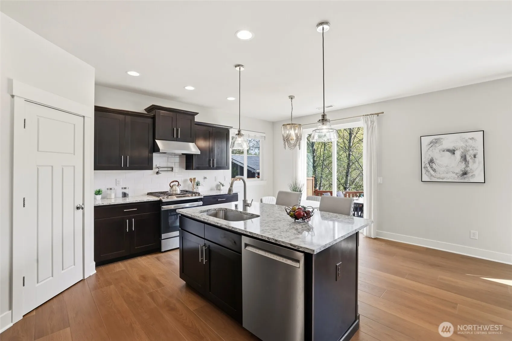 Welcome to a bright and inviting retreat where modern luxury meets the peace of nature. The heart of this home is a stunning great room that flows effortlessly into the dining area and kitchen. You will love the new LVP flooring and sophisticated designer touches throughout the main floor. The kitchen is a showstopper with a large island, elegant granite countertops, and SS appliances. The adjacent family room keeps things cozy with a fireplace that serves as a beautiful centerpiece. Sliding doors lead to a fully-fenced backyard backing to a lush, protected green space. This private sanctuary features a spacious patio and an inviting turf lawn, offering a perfect low-maintenance setting for play or relaxation. With added A/C for warm days, this home ensures year-round comfort. The main floor also includes a versatile flex space for an office or playroom, a 3/4 bath, and a garage with an extensive storage system. Upstairs, the 2nd floor features newer premium carpet installed within the last 2 years. You will find 4 generous BRs, including 3 updated with designer wallpaper. The expansive primary suite offers a 5-piece bath and a walk-in closet with a new custom storage system. This home comes pre-inspected for peace of mind. Located in the Westbrook Run community by Village Life, you will enjoy access to top-rated schools: Tambark Creek Elem, Gateway Middle, and Jackson High. Every detail is designed for a life well-lived. Discover the magic of this peaceful retreat today!