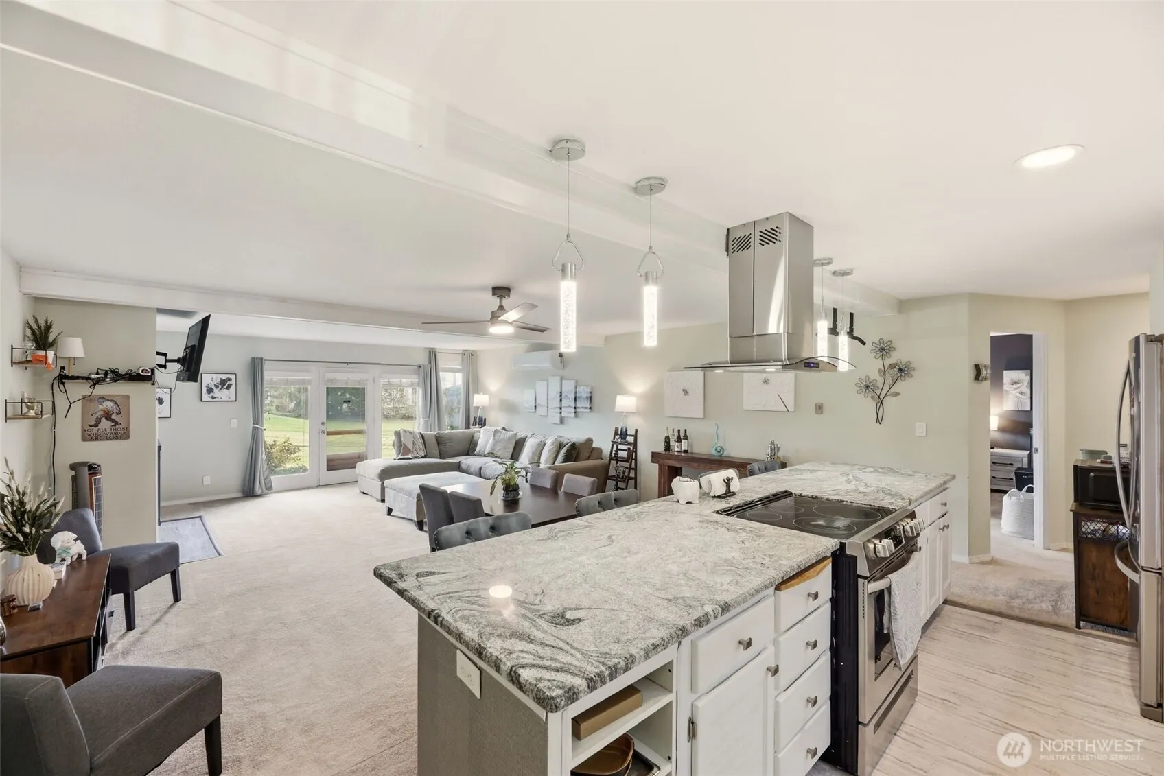 Beautiful and bright 1,447 sqft 2 bed 1.75 bath ground floor condo on the 3rd hole of Gleneagle Golf Course. UPDATES throughout! Full kitchen remodel with HUGE granite island. Interior painted, updated fixtures, new doors, etc. Enjoy tons of space inside and outside. Great room is very spacious (not just “spacious”) with tons of room for dining, living, and so on. Wood fireplace. Each bedroom has outdoor patio space, with the primary patio wrapping around to the living room doors and fronting the golf course. Large primary with full bath & large walk-in closet. 2nd bedroom has courtyard patio. Both bathrooms have been renovated in recent years. All appliances (stainless steel) stay, plus washer/dryer. This place is updated and turnkey! Stay cool with AC. Storage closets out the back door and in the shared garage. Enjoy enclosed garage parking spot. Security door for complex. Great location near new Amazon facility in a booming area. Close to community parks & trails, plus the golf course restaurant, pro shop & driving range. No age restrictions. Owners only complex. Come check it out!