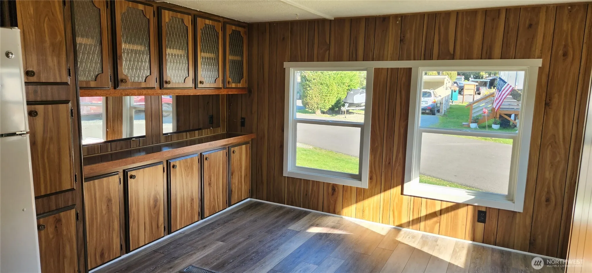 Discover this newly refreshed home, ready for its next owner. A brand-new covered front porch welcomes you – perfect for enjoying year-round outdoor living. Inside, the spacious kitchen offers abundant cabinetry for effortless storage and flows seamlessly into the bright, open dining area, framed by large windows that fill the space with natural light. The primary bedroom is comfortably sized, complemented by a second bedroom ideal for guests, a hobby room, or a dedicated home office. Recent updates include new LVP flooring throughout, new closet doors, energy-efficient double-pane windows, and freshly retextured ceilings. Stay cozy in cooler months with the warm ambiance of the wood stove, and enjoy summer comfort with the newly installed wall A/C unit. All appliances are included for added convenience. Outside, the covered carport provides protected parking, and the spacious shed offers an excellent workshop space or extra storage for gardening tools and equipment. Situated in a quiet, friendly 55+ community, this location offers easy access to parks, shopping, healthcare, and more. Park-approved pets are welcome, up to two cats or dogs, 25 lbs. max. Space rent remains affordable, with metered water, septic, and garbage billed to residents as a pass-thru charge through the park. Come see why this comfortable, move-in-ready home is the perfect place to start your next chapter.