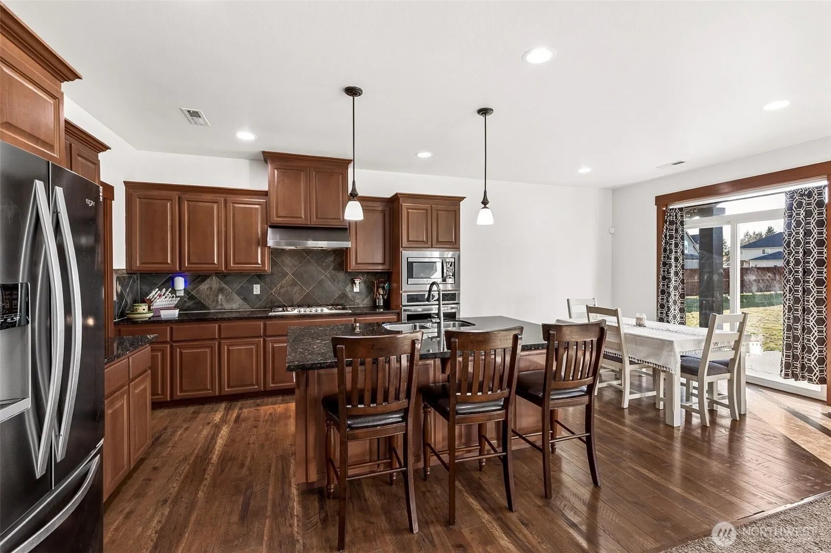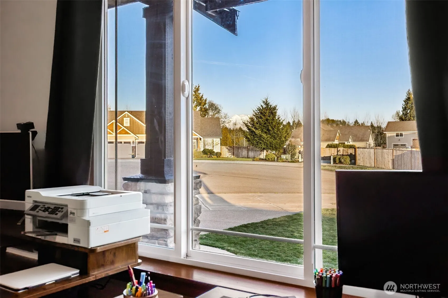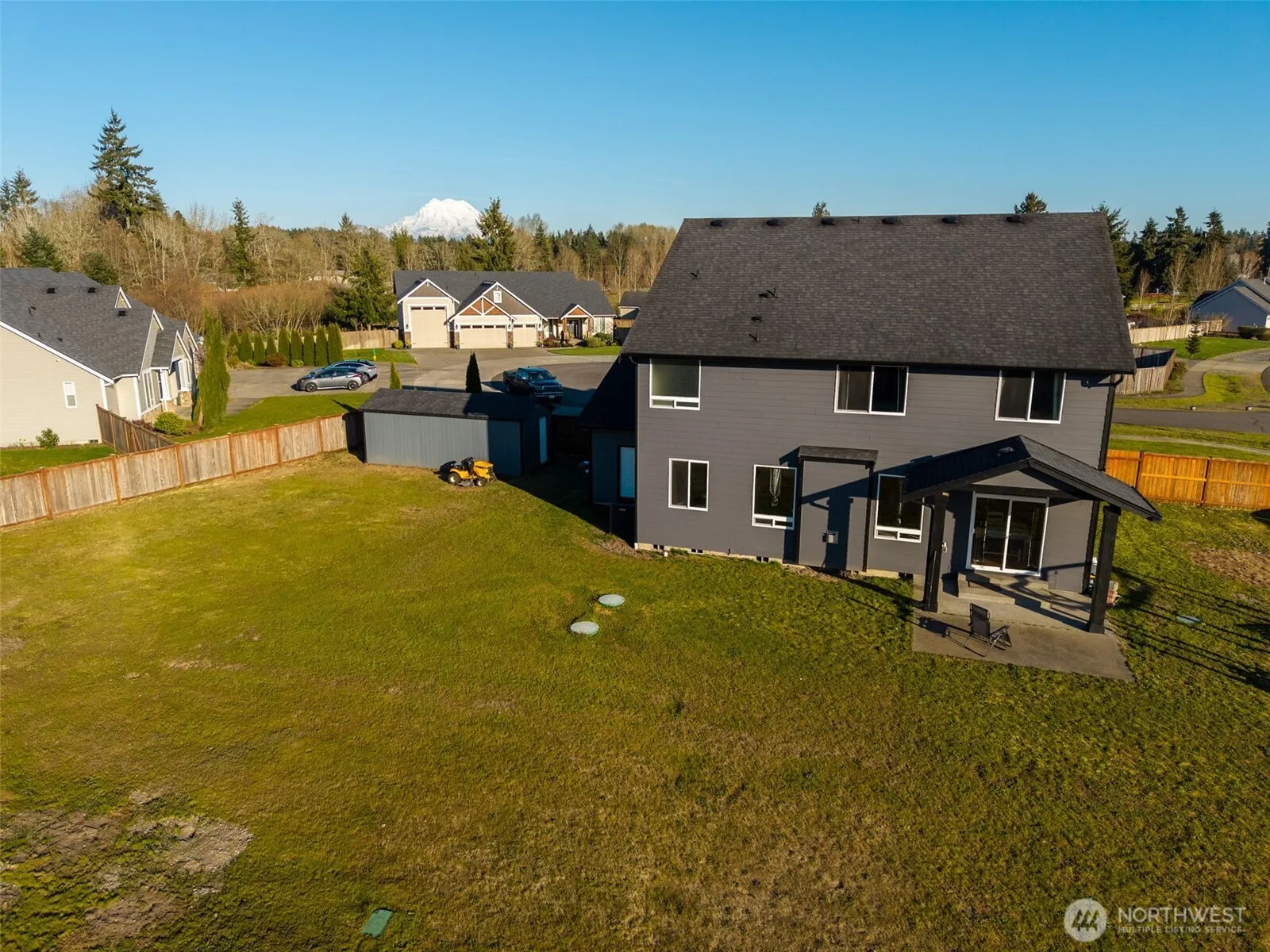 Nestled on a quiet cul-de-sac in the highly sought-after Lacamas Valley Estates, this stunning home welcomes you with a spacious great room and a convenient Junior Suite on the main level. The gourmet kitchen offers an expansive eat-up bar perfect for gathering, along with a generous dining area that flows seamlessly into the living room, complete with a cozy gas fireplace.Step outside to enjoy the covered patio, fenced yard, and inviting firepit—ideal for year-round entertaining. The full acre provides ample space, including RV parking tucked securely behind the fence. From the front office and covered porch, take in breathtaking views of Mt. Rainier that elevate everyday living.Upstairs, you’ll find four additional bedrooms, two full baths, a laundry room, and a spacious recreation room. Mt. Rainier views from both the rec room and one of the bedrooms add to the charm and functionality of the upper level.Lacamas Valley Estates offers wide open spaces for walking, small neighborhood parks, and convenient access to Roy, Yelm, and the East Gate at JBLM. This is a home you won’t want to miss—schedule your showing today.