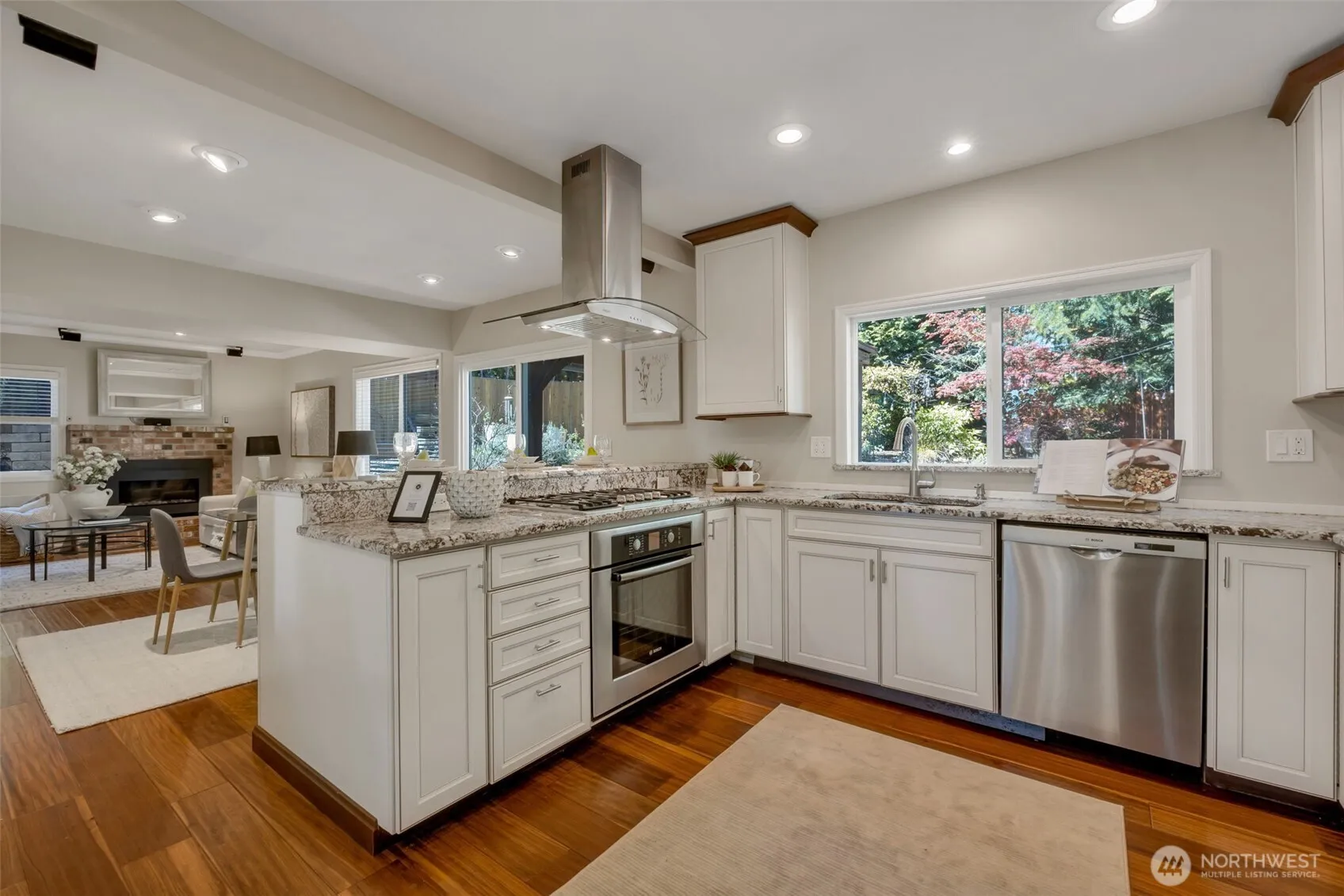 Welcome to this beautifully updated 3 bedroom, 2.5 bath two-story home located in the highly sought-after Lake Washington School District. This light-filled home offers a flowing, functional floor plan designed for both everyday living and entertaining. The main level features a spacious living room with a gas fireplace, a convenient half bath, laundry area, and a separate den/bonus room- perfect for a home office, playroom, or media space. Large windows throughout the home bring in abundant natural light and showcase views of the beautifully landscaped backyard. The upper level primary suite includes a 5-piece bath with a soaking tub and a walk-in closet. Recent upgrades include new high-efficiency gas furnace (2025), heat pump (2023), new carpet, fresh interior paint, updated bath and finished garage with epoxy floor. Tucked on a quiet cul-de-sac with a strong neighborhood community feel, residents enjoy friendly gatherings and a welcoming atmosphere. Just minutes from Juanita Village, Juanita Beach Park, The Village at Totem Lake, parks, shopping, and top-rated schools, this home offers the perfect blend of convenience and lifestyle. Move-in ready, pre-inspected, and thoughtfully updated- this Kirkland gem is ready to welcome you home.