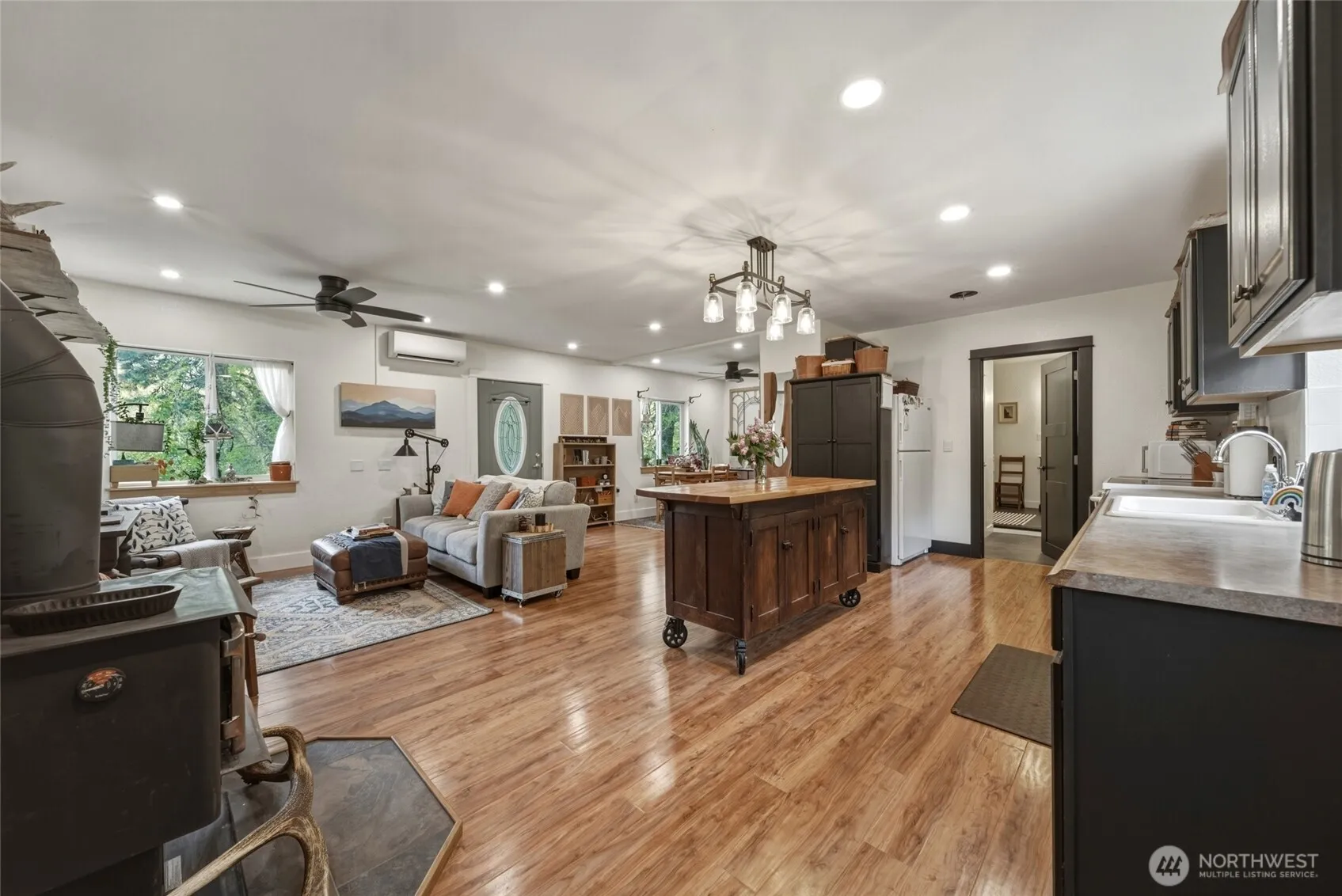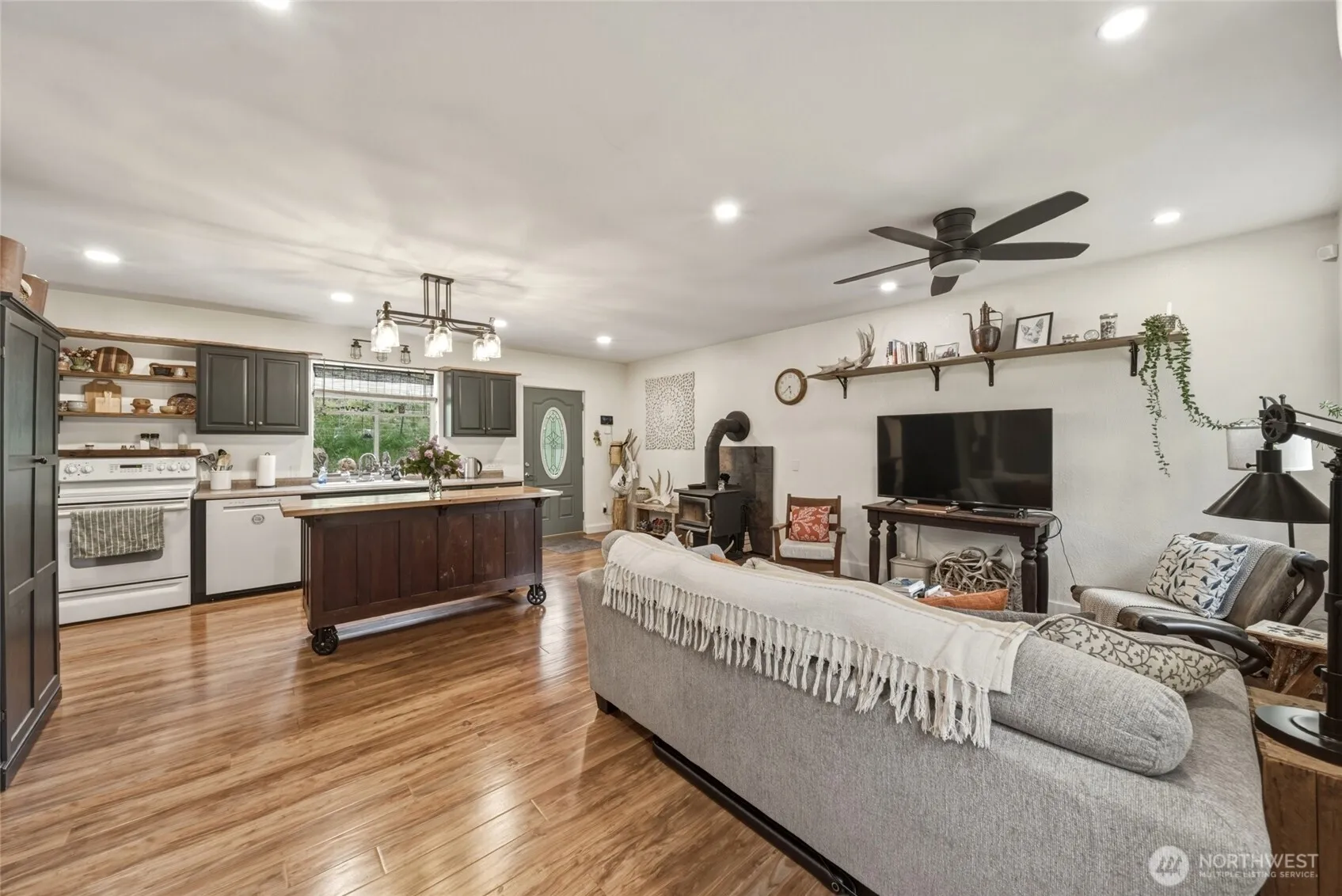 A rare opportunity to own a property that truly has it all—32 acres of privacy, versatility, and natural beauty. This exceptional acreage features a blend of wooded areas, fenced pasture, level ground, rolling slopes, and the seasonal Patit Creek meandering through the lower portion of the property. Ideal for horses or hobby farming, improvements include a horse barn, loafing shed, hay field, and established fenced pastures. The interior of this charming one-bedroom home has been tastefully updated and offers comfortable living, and also features an attached storage room, covered patio, and an attached two-stall carport. Year-round access is via a county-maintained, paved road. Set in a picturesque location with plenty of space and potential, this property also offers several potential building sites for a larger primary residence, if desired. This is a truly unique combination of lifestyle, function, and opportunity!