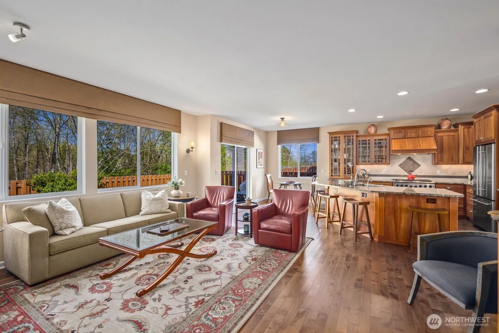Experience the perfect blend of elegance and tranquility in this light-filled 5-bedroom Craftsman, nestled in the sought-after Creekside on Riverview community. The home’s centerpiece is a custom-designed chef’s kitchen, anchored by a commercial-grade 6-burner gas range and professional hood, complemented by rich cherrywood cabinetry, slab granite counters, and upscale stainless appliances. Designed for modern versatility, the main level features a secluded bedroom and adjacent three-quarter bath, offering an ideal setup for a long-term guest suite, private home office, or accessible main-floor living. The upper level is highlighted by an expansive Primary Suite with a spacious walk-in closet and generous 5-piece bath, plus three additional bedrooms, a full bath, and a convenient laundry room. The open-concept Great Room flows seamlessly to a private, level backyard where a brick-paved patio overlooks a lush, quiet greenbelt. Parking is effortless with separate 2-car and 1-car garages, offering ample space for vehicles and storage. Residents enjoy premium amenities including a community playground and basketball court, with the Green River Trail system just moments away. This prime location offers effortless access to Southcenter’s abundant shopping options, dining, transit, and the Sea-Tac Airport.