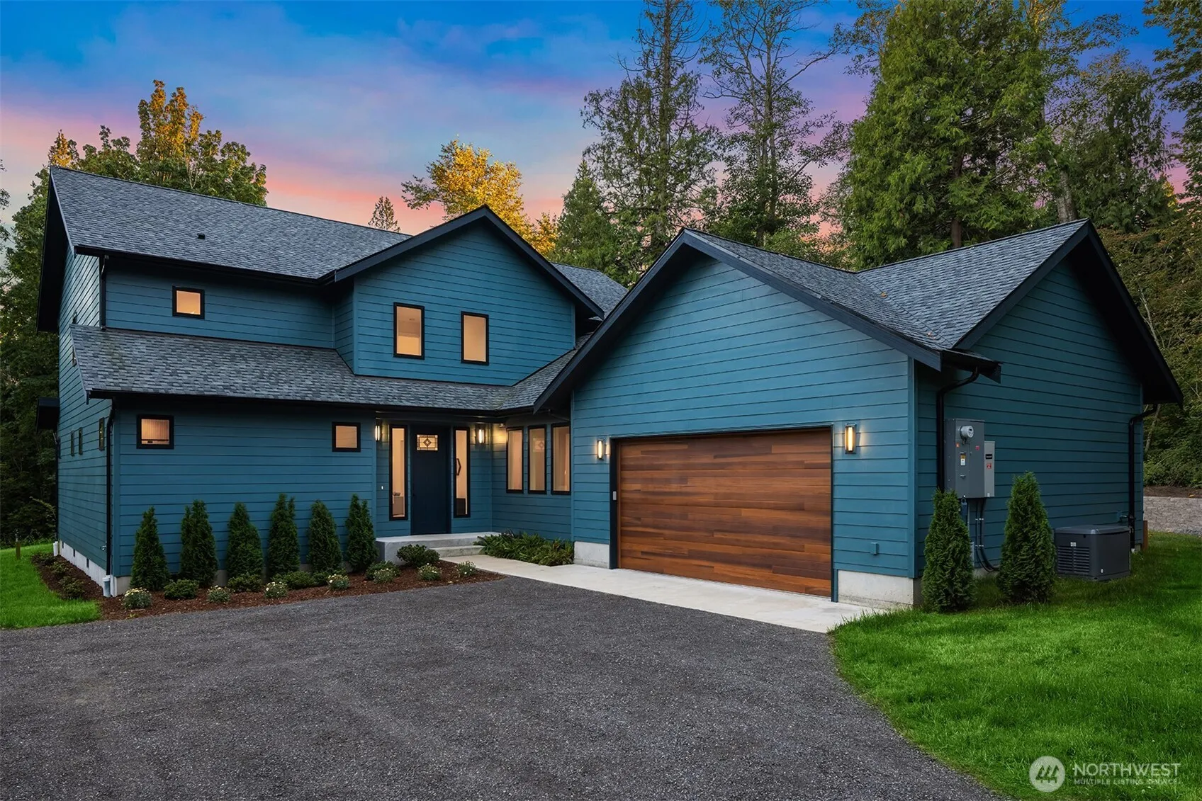 Tucked away on 5.33 private acres, this artisan-crafted custom home offers a rare blend of luxury, functionality, and rural tranquility. Designed for comfort and longevity, it lives like a true forever home. The chef’s kitchen is beautifully appointed with Thermador appliances, walk-in pantry, and wine fridge, while the dramatic great room showcases soaring ceilings and a beautifully handcrafted statement piece fireplace. Versatile layout includes 2 primary suite options with spa-like baths on both the main and upper levels, plus 2 additional guest bedrooms and a dedicated home office. Expansive windows create a true retreat where you’ll enjoy watching nature on peaceful mornings and relaxing into a quiet evening from the back deck. Attached 2-car garage plus detached 2-car garage/shop add flexibility for hobbies, storage, or projects. Thoughtfully equipped with solar panels, auto-on generator, central A/C, EV charging, and PUD water available. A rare offering where timeless design, modern comfort, and elevated living converge.
