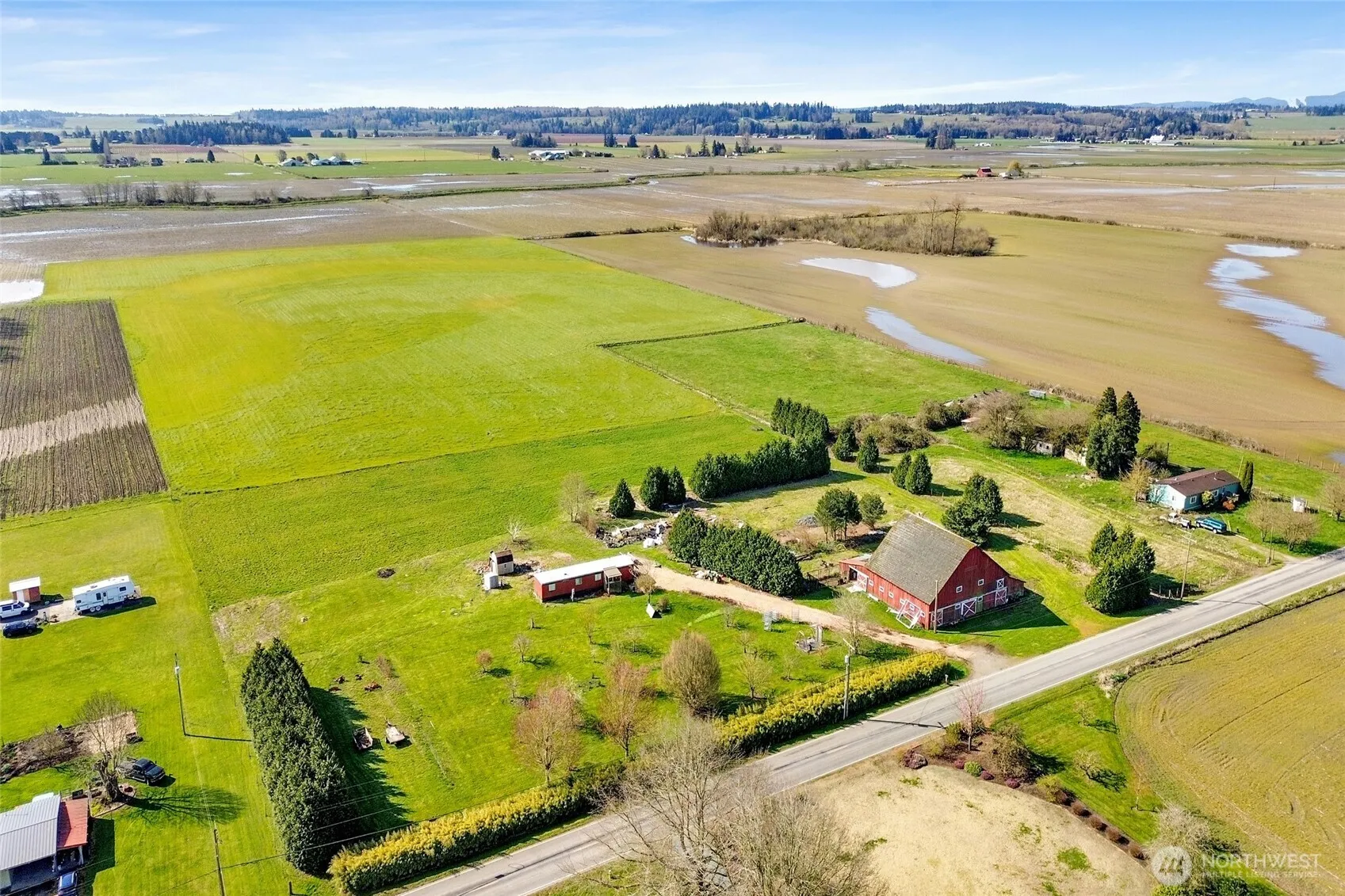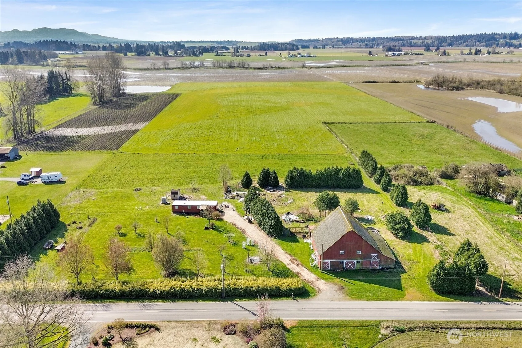 Tucked away in a quiet, serene setting west of iconic Chuckanut Drive, this just shy of 5-acre property in Bow offers a rare opportunity to create your dream estate. Level and usable, the land features an historic barn, established fruit trees, and blueberry bushes, all on ground that has not been sprayed—ideal for those seeking to pursue organic certification. The existing home holds no contributory value, allowing a clear path to design and build new. A septic system and well are already in place, along with the option to purchase a water share through the local Blanchard-Edison water association, adding convenience and future flexibility. Enjoy expansive westerly and southern exposure with stunning sunsets, complemented by picturesque views of snow-capped Mount Baker. Zoned agricultural, this property presents endless possibilities—whether for farming, hobby use, or creating a private rural retreat in one of Bow’s most sought-after locations.