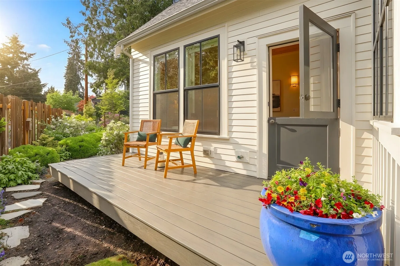Head over heels in love! Darling one level cottage with glorious gardens! It’s like jumping into a page in Sunset magazine! Seriously! All the right spaces! Single level Modern Farmhouse-filled with light! Artful design! Lovely windows! Pine paneled vaulted spaces-solid wood-planked floors-dutch door offering outside space in-outdoor sitting areas-DREAMY! Dining room surrounds you with joy overlooking SW facing gardens. Sun light drenched kitchen has lots of beautiful quartz counter space, storage galore and professionally equipped. Tucked away down a private lane in this ever coveted pocket community on its own 6067 sf lot, this 1000 sf cottage has 2 bedrooms, heated tiled bath, large walk in shower, double sink vanity. Plus, there’s room for your home office, workspace, gear, crafts-whatever you desire in the 365 sf one-car garage with bump out, private entrance, window, ample pull down attic storage with barn door detail, wired with car charging capability. Built 4-star Green High efficiency Heat pump/AC. Pinehurst Light Rail, Northgate Whole Foods all coming soon! Hazle Wolf STEM k-8-one mile away. See today!