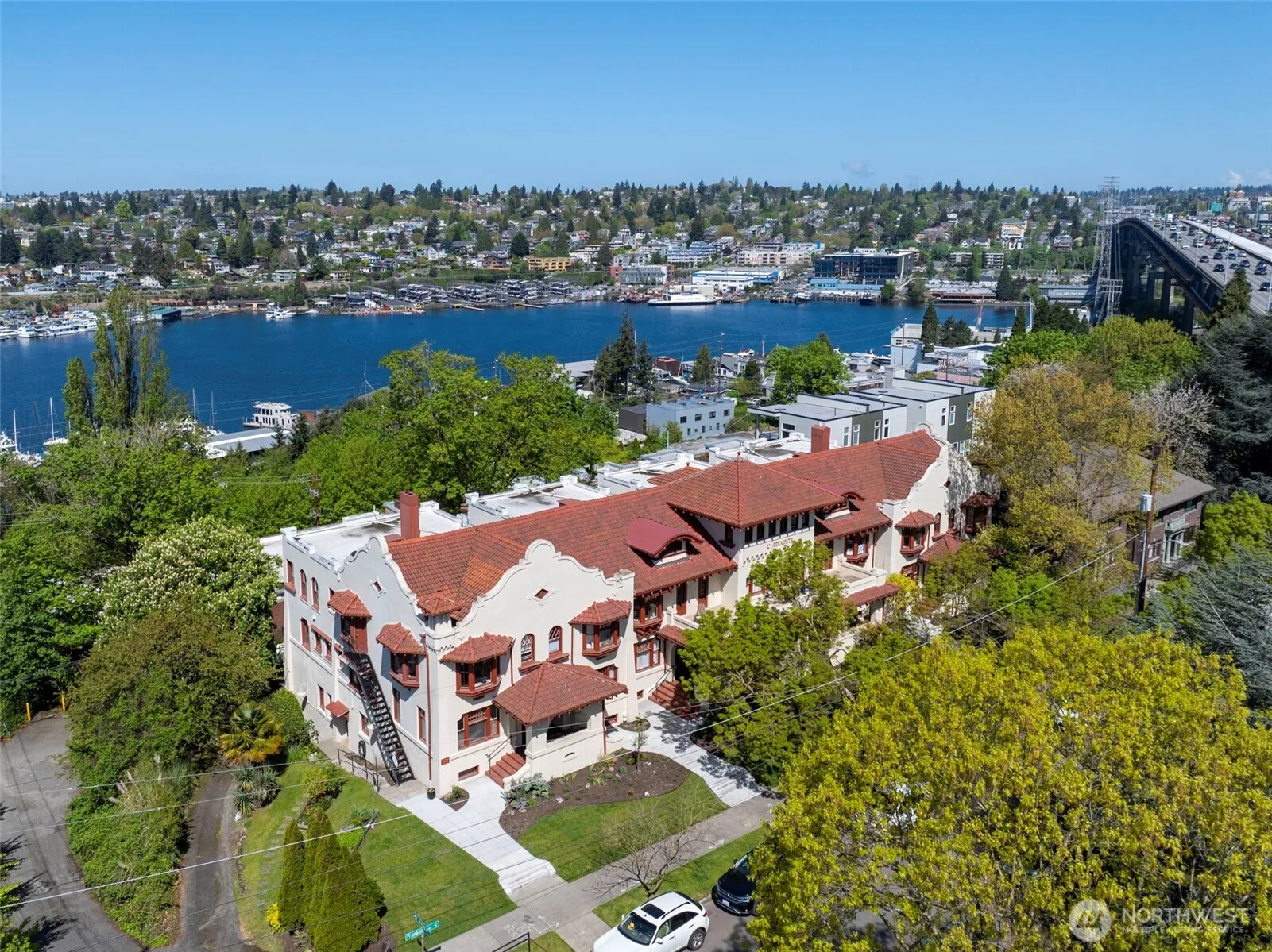 Welcome to the L’Amourita, a striking Seattle Historic Landmark built in 1909 in the Spanish Mission Revival style. The exterior features stucco walls, decorative parapets & a terracotta tiled roof. Inside, unit 2909A has been lovingly restored. Layers of paint were stripped from the trim bring beautiful old-growth millwork back to its original luster. Vintage light fixtures & hardware preserved, mahogany inlaid hardwood floors refinished, & the original windows restored. The kitchen, bathroom & basement have undergone a full renovation (new plumbing, wiring & panel) sensitively blending original details w/ modern amenities. In the kitchen, you’ll find white quartz countertops, push-button replica light switches, tile backsplashes, gas range, & all high-end appliances. The bath offers a deep soaking tub surrounded by subway-tiled walls, elegant brass fixtures & hexagon ceramic tiled floors. The west facing bedroom includes a closet w/ a professional organizing system & windows offering views of Lake Union, Gasworks Park, Queen Anne, & the co-op’s inviting courtyard below. This home also features formal living & dining rooms, as well as a lower level w/ a W/D & versatile space perfect for an office &/or media room. Take in sunset views in the back courtyard & gardens. Eastlake restaurants & cafes are blocks away & Capitol Hill, UW, & Downtown just around the corner. Storage, bike & laundry room. Friendly neighbors that welcome cats. Monthly fee’s include HOD’s + Taxes & Ins!