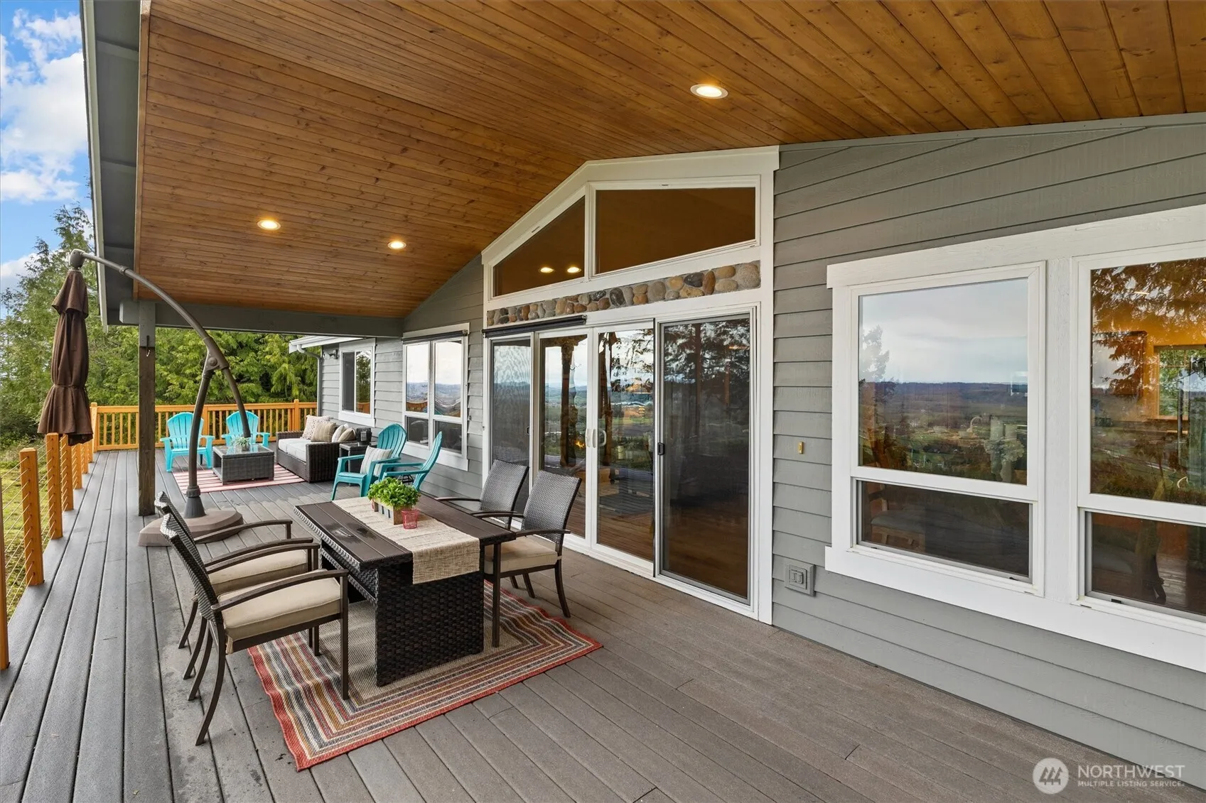 Experience Northwest living at its finest in this stunning 2,050 sq ft home, perfectly positioned between Monroe and Duvall, offering breathtaking panoramic views of the Snoqualmie River Valley and Olympic Mountains. Designed for effortless one-level living, the open-concept kitchen, dining, and living areas create an ideal space for entertaining, all bathed in abundant natural light. Step outside onto the expansive covered deck and soak in the incredible scenery year-round, or unwind on the charming wraparound porch surrounded by nature. The spacious primary suite is a true retreat, featuring a private bath and direct deck access—perfect for enjoying peaceful mornings or sunset views. Cozy up by the stone fireplace with gas insert on cooler evenings, adding warmth and character to the home. Home has 4 bedroom septic and a versatile basement room offering potential for a third bedroom, office, or flex space. Set on 5 serene acres, the property offers a level area ideal for adding a shop, barn, or DADU, giving you flexibility for future expansion. Enjoy the tranquility of a quiet community with no HOA, often sitting above the fog for those picture-perfect views, yet just minutes from town for everyday convenience. Don’t miss this rare opportunity to own your own piece of Pacific Northwest paradise.