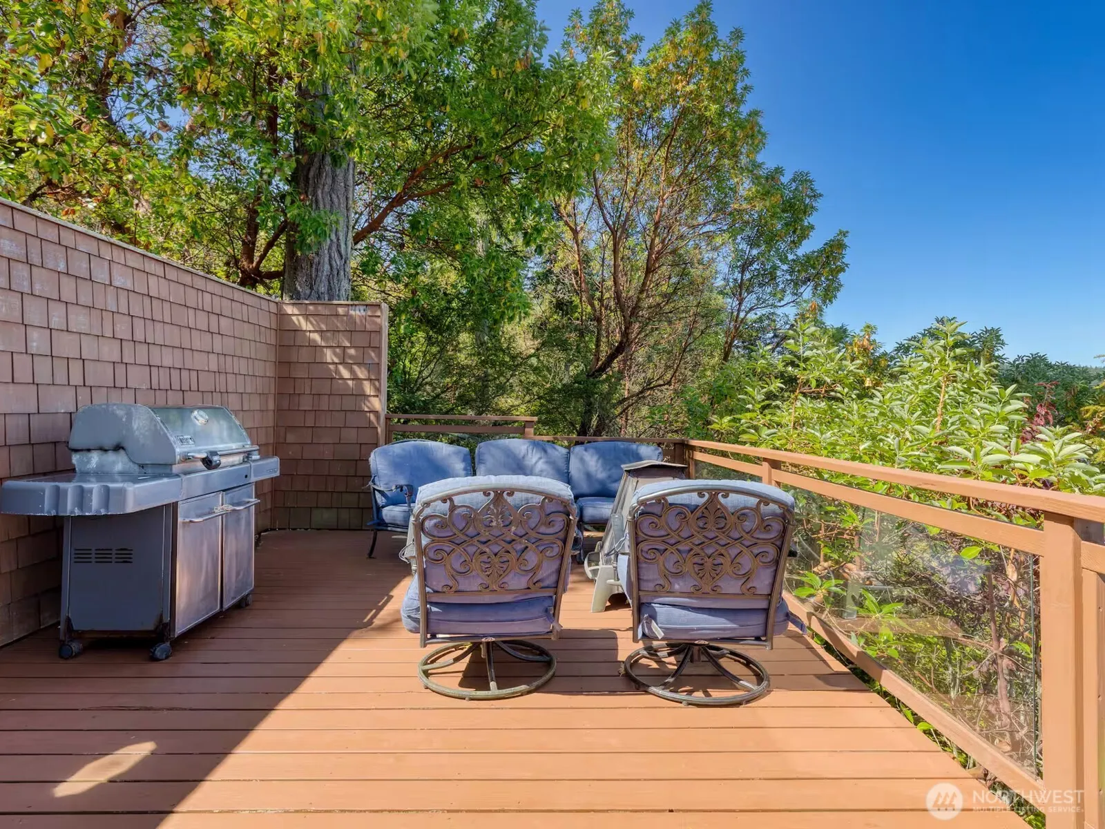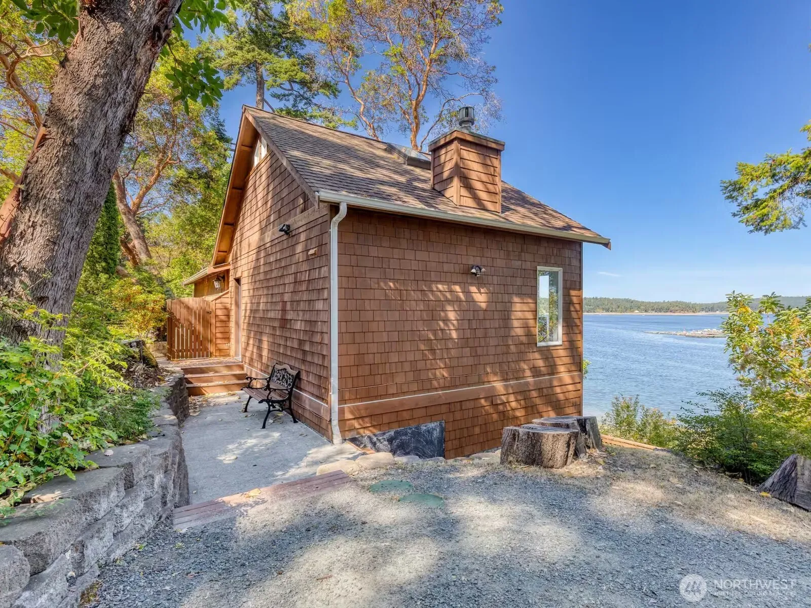 Perched on a serene, private stretch of Whidbey Island shoreline, this captivating waterfront retreat offers the perfect blend of Northwest charm, breathtaking views, and everyday comfort. Set on an expansive 27,007± SF sloping, wooded lot with an impressive 335 feet of waterfront and protective bulkhead, this property delivers a rare sense of seclusion while remaining conveniently accessible. The 1,818± SF home is thoughtfully designed to maximize its stunning surroundings. Inside, the vaulted, beamed great room welcomes you with a warm gas fireplace and walls of windows that frame sweeping views of the water, sunsets, mountains, and abundant wildlife. Whether you’re entertaining or enjoying a quiet evening, the ever-changing scenery becomes the centerpiece of daily living. The stylish kitchen features stainless steel appliances, an island with bar seating, and seamless flow into the spacious dining area—both perfectly positioned to take in the view. A charming sleeping loft offers additional guest space or a cozy retreat, also sharing in the home’s incredible vantage point. Wake up to water views in the generous primary suite, complete with its own bath and private deck access—ideal for morning coffee or evening unwinding. A guest bedroom provides comfortable accommodations for visitors. Outdoor living is equally inviting, with expansive view decks on both levels and a lower deck featuring a hot tub for soaking under the stars. The bulkhead shoreline offers easy access