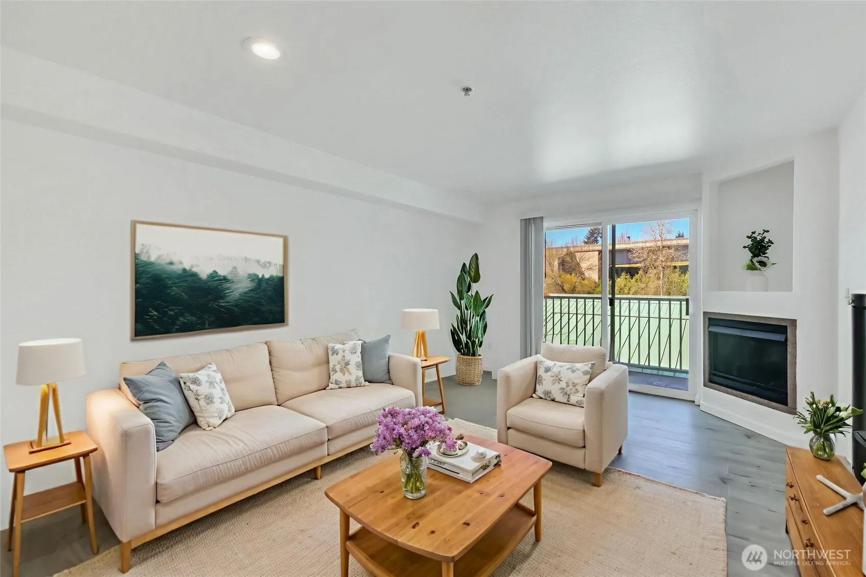 Beautifully updated 2 bedroom, 2 bathroom condo in the heart of Monroe! Quiet corner unit literally shares only one wall with a neighbor, and that wall is just the two bathrooms and the laundry room. This turnkey 885sf home offers comfort, style, and is light and bright and cheery. The open living area has room for living/dining and features a gas fireplace (HOA pays for gas) and a balcony with your own secure storage closet. Recent updates include luxury vinyl plank flooring throughout the main living areas, newer carpet in the bedrooms & fresh interior paint. Kitchen offers new quartz countertops, stylish breakfast bar, plenty of cabinet space, and new and newer appliances. Both bedrooms are generously sized, including a primary suite with an ensuite bathroom. Convenient laundry room offers full sized washer and dryer and room for storage. Tasteful bathrooms have updated vanities with quartz countertops. The secure lobby entry adds comfort and privacy. Parking is a breeze with a private one car garage and an additional uncovered parking spot (and plenty of visitor spots too!). HOA dues include water, sewer, garbage, gas, grounds maintenance, etc. With no rental cap, this property is an excellent opportunity for investors, first-time buyers, or those seeking low-maintenance living. Conveniently located near parks (there is a public playground less than half a mile away), schools, shopping, dining, and easy highway access.