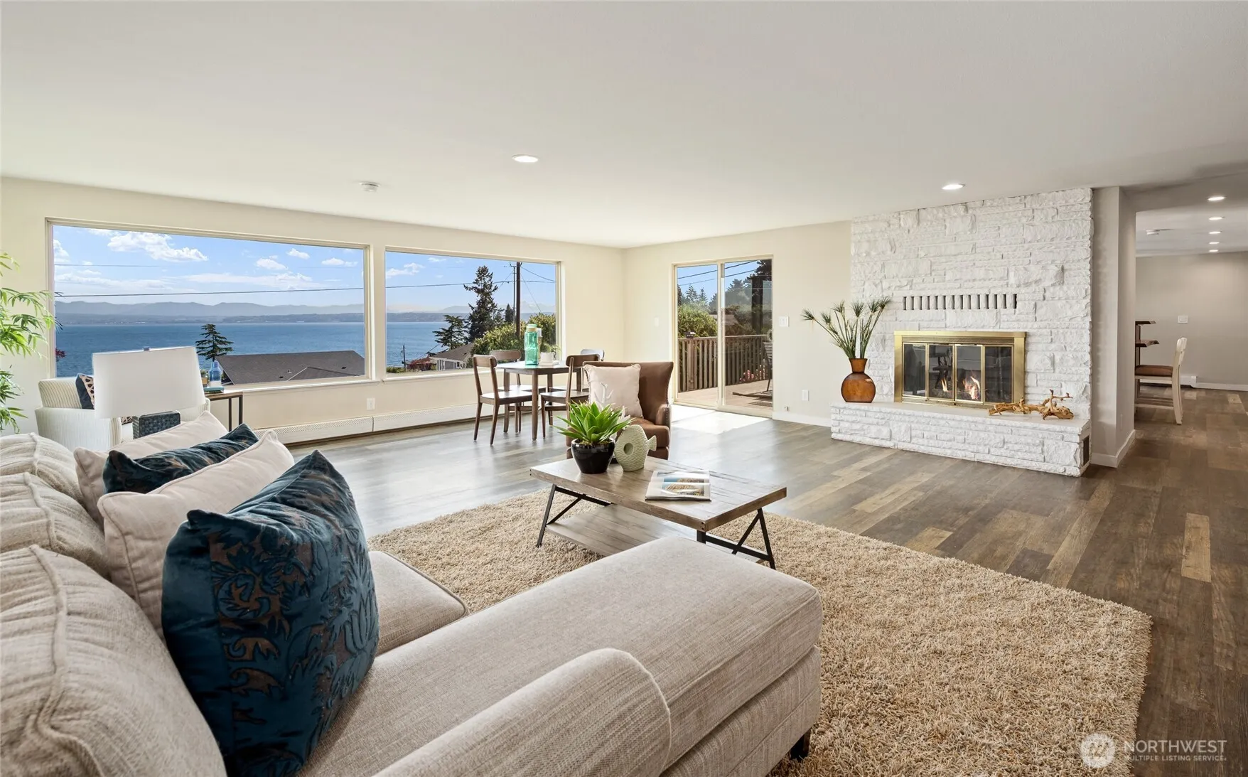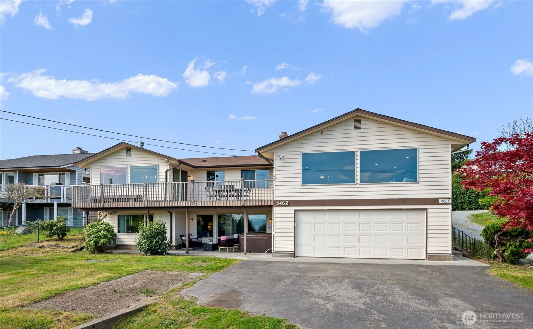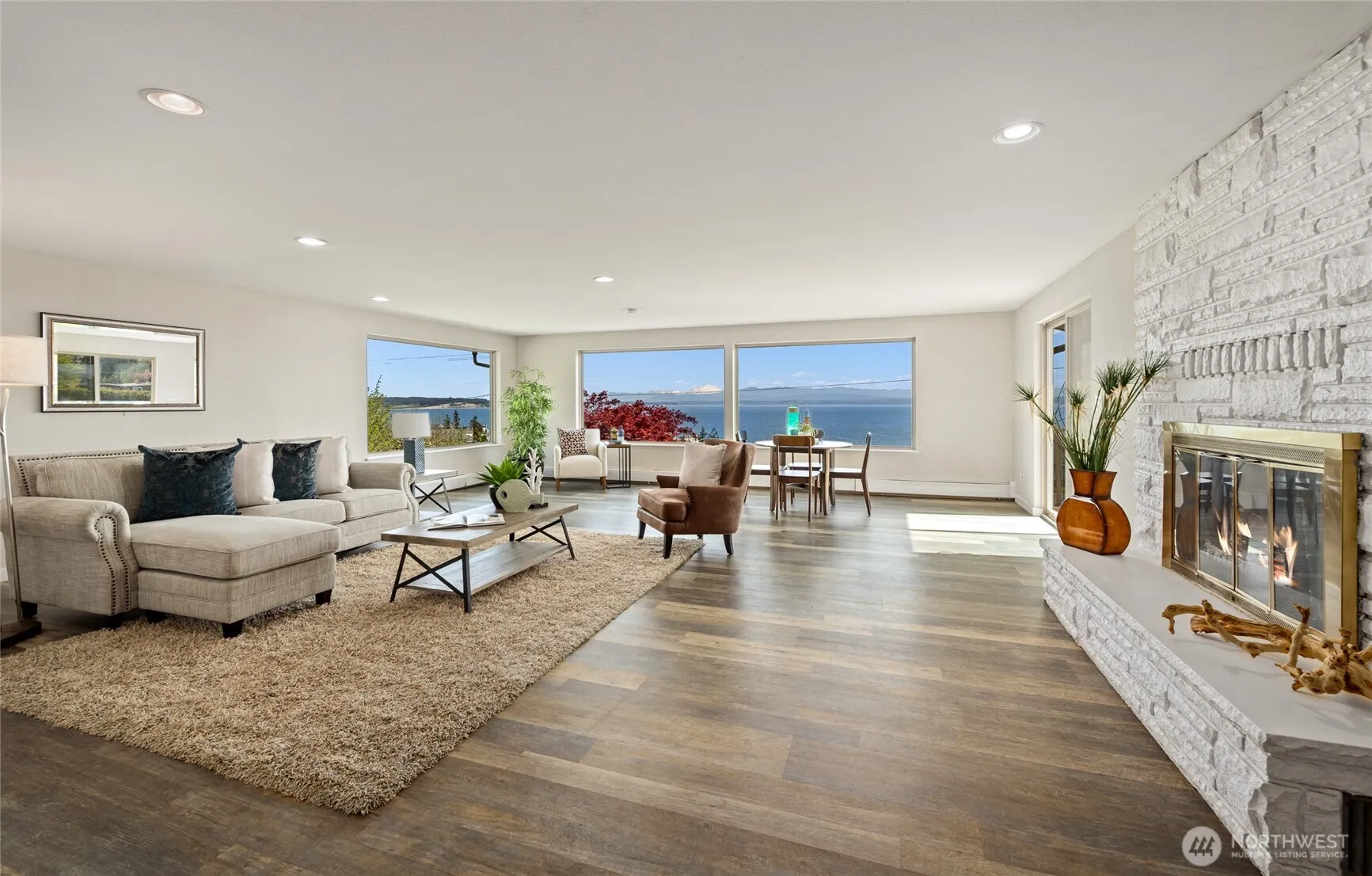 Dream retreat on coveted Camano Island. This breathtaking 3,344 sq. ft. residence delivers stunning 180-degree water views from every level. Thoughtfully renovated throughout, the open-concept layout blends modern elegance with the natural beauty of the Pacific Northwest. With two generous primary suites, four bedrooms total, extra den/office room and 3.5 bathrooms, there’s space for everyone. A separate entrance creates exceptional potential as a mother-in-law suite, ADU, or income-producing rental, making this as smart an investment as it is a sanctuary. Cozy up around either of the three fireplaces, one on each level, then unwind in the hot tub while soaking in panoramic water views. Step out onto the expansive view-facing deck, the perfect perch for morning coffee, evening sunsets, and with the Fourth of July just around the corner, a front-row seat to a spectacular fireworks show dancing across the water. Beyond the home itself, enjoy generous yard space with plenty of room for gardening, outdoor entertaining, or simply soaking in the island surroundings. The attached garage, detached garage and workshop, plus dedicated storage space ensure abundant room for vehicles, boats, gear, and projects of every kind, everything has its place. As a resident, enjoy exclusive country club membership with access to community beaches and clubhouse, waterfront living at its finest.
