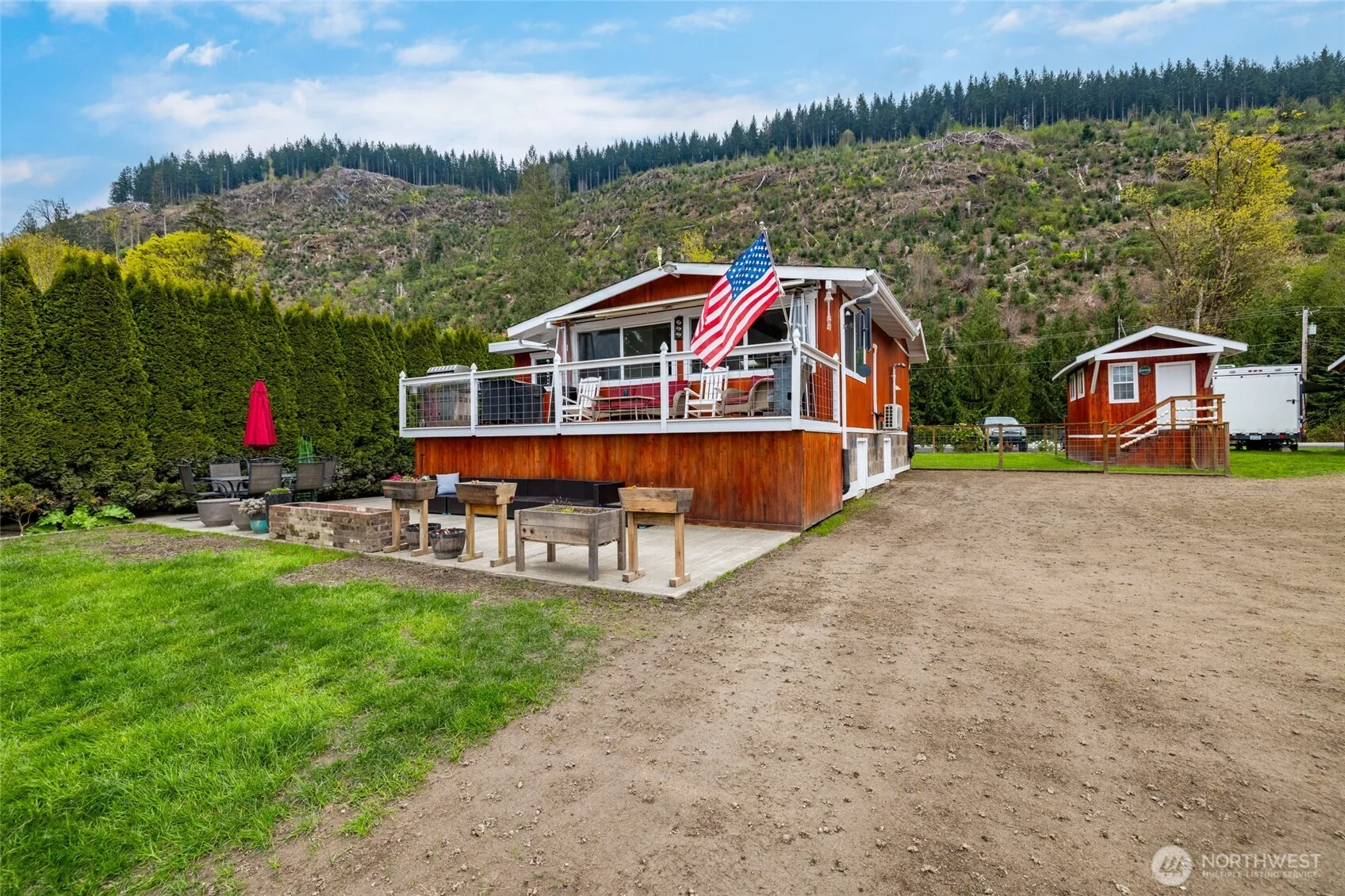 Enjoy the endless possibilities of living on your own riverfront retreat along the Skagit River. Main home features a 1-bedroom, 3/4-bath open-concept layout with a beautifully updated kitchen, in-home laundry, mini-split heating and cooling, and a cozy pellet stove. Large windows fill the space with natural light and frame peaceful river views. A spacious deck and patio extend the living area outdoors—ideal for morning coffee, entertaining, or unwinding at the end of the day. The property includes five additional buildings, highlighted by a charming A-frame cabin with loft bedroom, bathroom, and kitchenette—ideal for guests, extended stays, or potential rental income. The remaining buildings include a one-car garage, a versatile workshop, a separate building with bathroom, shower, and laundry, and two additional multi-use spaces suitable for studio use, storage, or expanded living potential. RV hookups and ample parking provide added convenience and functionality, making the property well-suited for full-time living, a private retreat, or investment use.