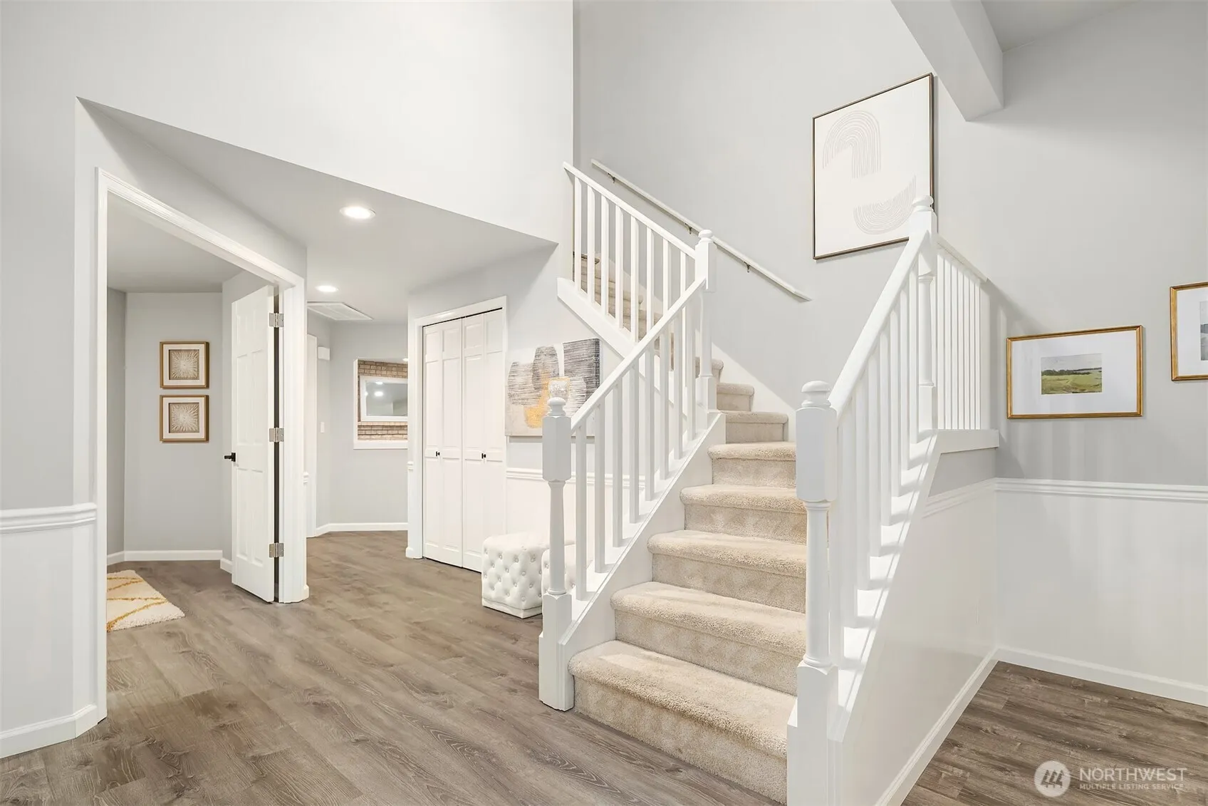 Better than new! Welcome to this beautifully updated Murray Franklin resale nestled in a quiet cul-de-sac in a desirable Bothell neighborhood. Located in the top-rated Northshore School District, this 4-bedroom + bonus, 2.5-bath home offers a thoughtfully designed and highly functional floor plan with elegant upgrades throughout, including brand new bathroom flooring, vanities, quartz vanity tops, and hardware. The inviting living room features soaring vaulted ceilings that fill the space with natural light, while a dedicated main-floor office provides the perfect work-from-home setup. The renovated gourmet kitchen is a true centerpiece, designed for both everyday living and entertaining. Upstairs, you’ll find four spacious bedrooms, including a generously sized primary suite with a well-appointed 5-piece ensuite bath. Situated on a large, level lot, the fully fenced yard offers privacy and plenty of room to relax, play, and enjoy the best of Pacific Northwest outdoor living, with a sprinkler system for added ease of maintenance. Just minutes from downtown Bothell’s vibrant shops, parks and restaurants, I-405, and the highly regarded Northshore schools.