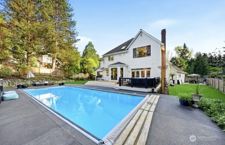 Resort-like POOL HOME just in time for summer! Dream home in Tuscany set on a flat half-acre corner lot and quiet Cul-de-sac. Over $250k remodel with new kitchen, new bathrooms, new floors, new paint, new deck, updated pool, new windows and more. From the moment you arrive, the circular driveway, grand entrance, and large front yard make this home stand out from the rest! The expansive kitchen island flows into a lush, private backyard oasis featuring a heated in-ground pool and hot tub, perfect for entertaining. Thoughtfully designed main floor suits every need, offering generous space for dining, relaxing, and work from home in a dedicated office. Upstairs bonus room is perfect for a game room or potential separate entrance ADU/AIRBNB. Highest quality luxury materials throughout.