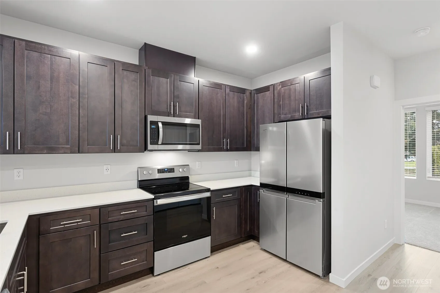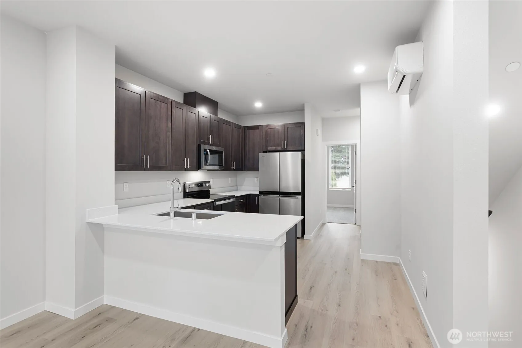 Corner unit townhome offering elevated privacy, natural light, and a highly functional layout in a well-connected Everett location. Positioned as one of the more desirable placements in the community, this home benefits from additional windows and a more open feel throughout.Designed for flexibility, the entry-level bedroom and ¾ bath provide an ideal setup for a home office, guest space, or multi-use living. The main living area features soaring ceilings and expansive windows, creating a bright and inviting atmosphere that flows seamlessly between the kitchen, dining, and living spaces.The kitchen is centered around a peninsula with seating, offering both functionality and a natural gathering point. Upstairs, the primary suite is thoughtfully designed with ensuite bath and comfortable proportions, while an additional bedroom, full bath, and utility area complete the upper level.A fully fenced backyard offers added privacy and outdoor usability, while the attached 2-car tandem garage with direct access adds valuable flexibility for parking, storage, or both.Located near Paine Field, Mukilteo schools, local parks, and major commuter routes, with easy access to shopping, dining, and the Whidbey Island ferry.A well-positioned townhome that balances comfort, layout, and location. Book your tour TODAY!