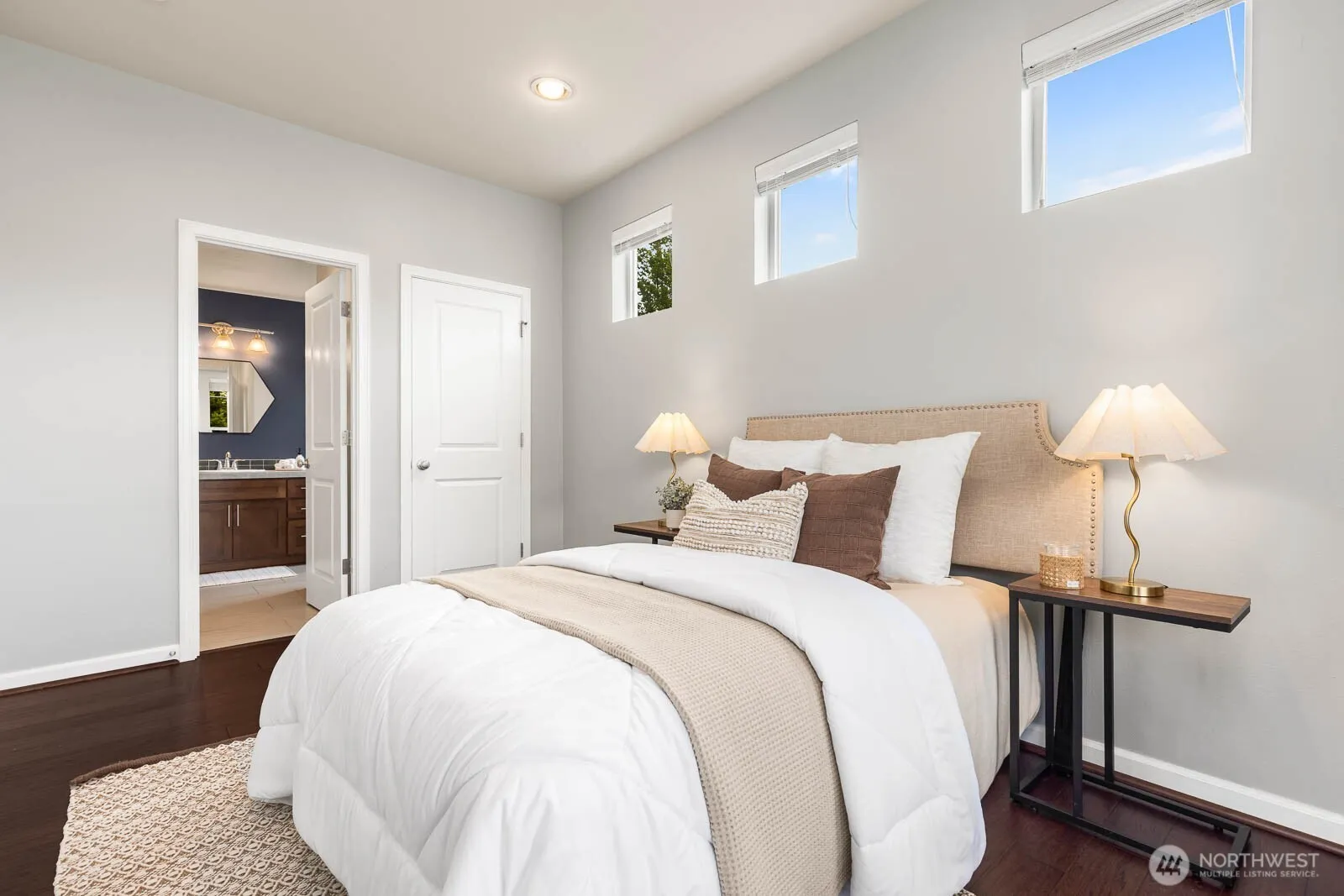Welcome to Overlook at Riverfront and the highly desired Snohomish model that features a main floor bedroom with a full bath! This home sits on a corner lot, features 5 beds, 2.75 bath and a bonus room perfect as a flex or home office. This is a former model home and has plenty of accents and additional touches that set it apart from the rest. Main floor offers the guest bed, mud room from the garage, open floor plan with extra large kitchen, plenty of counter and cabinet space, an oversized center island and living room perfect for entertaining. Upstairs you’ll find the large primary bedroom, walk-in closet and amazing 5 piece bath. 3 guest bedrooms, an additional flex/bonus room that makes a perfect office, play room or even an additional guest room. The utility room offers a countertop folding area with additional storage. The upstairs hardwoods are a recent addition and the AC makes those hot days a breeze. The easy maintenance back yard ensures more enjoyment and less yard work. The home sits steps away from the Riverfront trail, the neighborhood itself is walkable and leads to a large play space in the middle of the community! I5 access minutes up the street for commuters, plenty of shopping close by and just north of the community you’ll find the Riverfront development which includes plans for retail stores, new trails, parks, and water access. The revitalized Port of Everett is a quick drive away for more restaurants, the marina and plenty of activities!