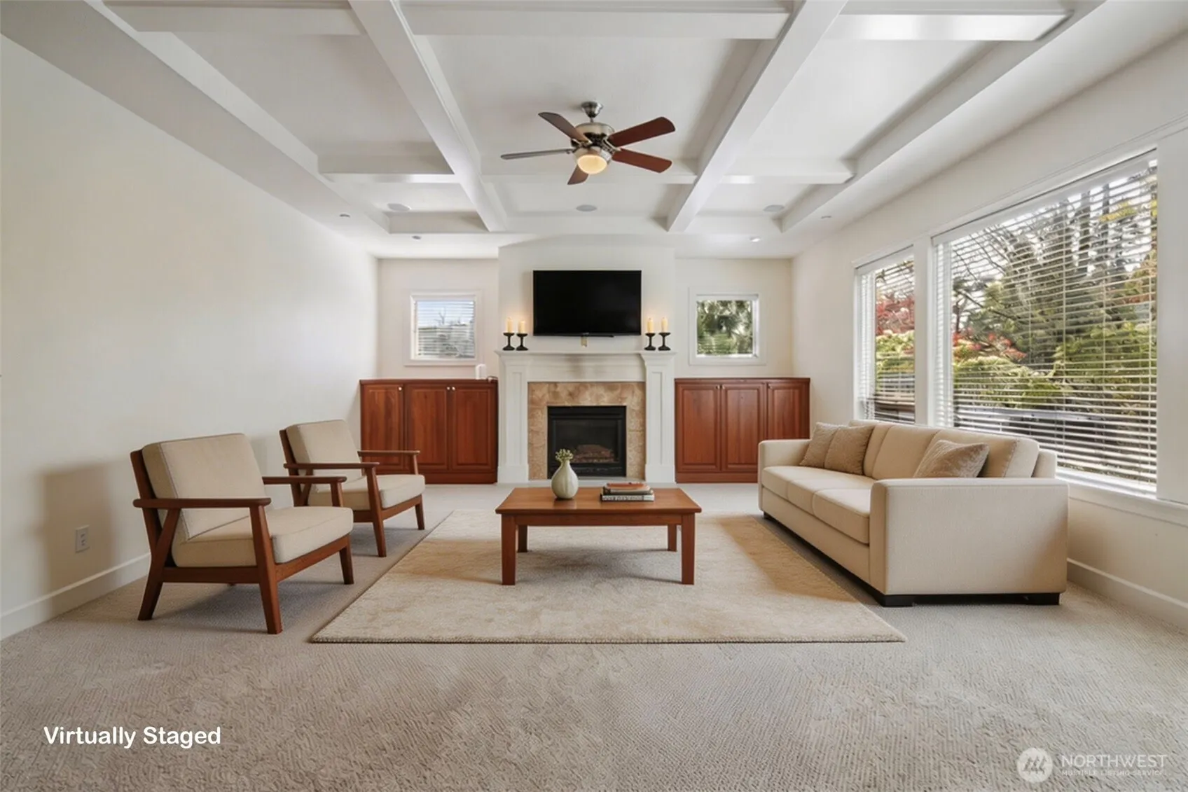 Experience elevated living in this architecturally rich home in sought-after Lacamas, where lifestyle meets design. Surrounded by access to boating, scenic trails, and golf, this residence offers a rare blend of luxury, privacy, and everyday comfort.A grand entry with a double staircase sets the tone, leading into light-filled interiors defined by soaring cathedral ceilings, expansive floor-to-ceiling windows, and stunning Brazilian cherry hardwood floors. The thoughtfully designed layout includes a spacious great room with fireplace and custom built-ins, a professional den with rich millwork, and a versatile bonus room ideal for media, fitness, or play.The chef’s kitchen is built for both function and entertaining, featuring a slab granite island, convection double ovens, custom cherry cabinetry, walk-in pantry, and integrated wine storage.Retreat to the luxurious primary suite with its own fireplace, dual walk-in closets, and spa-inspired bath with dual vanities.Outdoors, the lush, private backyard creates a true sanctuary—complete with a striking water feature, mature landscaping, expansive patio, and a serene, park-like setting that feels miles from it all.