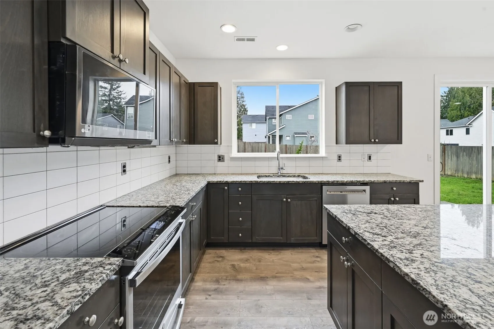 Welcome to Denali Firs – Contemporary homes in Marysville! Located just moments away from Frontier Village, 1-5, Hwy 2 & 9, Tulalip, Outlet shopping, and in a good school district! This home, built in 2019 features a nice size kitchen (also piped for gas range if desired) with stainless steel appliances, Tankless water heater, pantry, dining space and living room with a gas fireplace and a main floor bedroom and 3/4 bath! Upstairs features 4 more bedrooms with the primary bedroom having a huge en-suite bath and walk-in closet with plenty of natural light. Brand new Luxury Vinyl Plank flooring and New carpeting just installed. The nicely sized 2 car garage with overhead storage and long driveway accommodates all your guests. Also, with one of the largest lots with a flat back yard, there is enough room for all your social activities. Check out this amazing opportunity to own in one of Marysville’s finest locations.