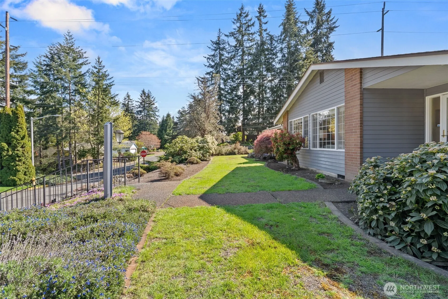 This charming Fircrest home has been lovingly cared for by the same owners for over 53 years. As they look forward to their next chapter, they’re excited to pass it on to someone new who will host barbecues, plant a garden, and make lasting memories in this inviting rambler…… Conveniently located near shopping, schools, and recreation, you’ll have plenty to enjoy right at your doorstep. Inside, expansive windows fill the living and dining areas with natural light, creating warm, welcoming spaces perfect for everyday living and special gatherings alike. Brick fireplaces serve as striking focal points in both the living and family rooms, though they have not been used in recent years and are not warranted….. The primary bedroom has it’s own smartly-designed bath and the main bath, recently redone has a “Spa-inspired” soaking tub, is convenient to the other two bedrooms….. The updated kitchen w/ wood flooring is designed to impress, featuring an island Viking cooktop ideal for cooking enthusiasts, along with abundant storage—including convenient rollout shelving for easy access to all your essentials. Keep friends close because the cozy family room kitchen is right there, next to the heart of the home…… There’s an oversized double garage in addition to other covered parking on the huge corner lot of 12,316 sf. From the Family room, you can enjoy the outdoors year-round with the private, covered patio.