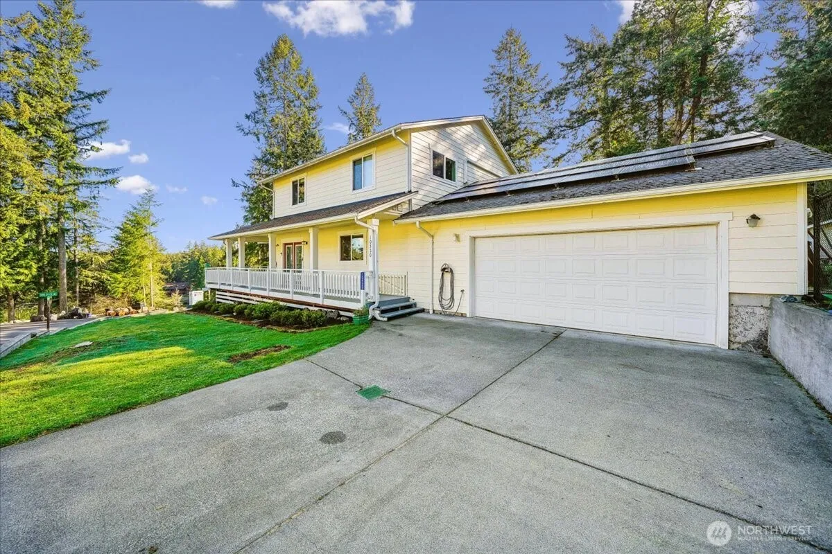 Experience the pinnacle of Anderson Island living in this sun-drenched 3-bed, 1.75 bath home perfectly perched on a corner lot overlooking the shimmering waters of Lake Florence. Step inside to a soaring great room where vaulted ceilings & ample windows invite an abundance of natural light. You will love the upgraded kitchen, featuring premium quartz countertops, solid wood cabinetry, newer stainless steel appliances, & a convenient eat-in peninsula that makes both daily living & entertaining a breeze. The main floor also hosts 2 comfortable bedrooms, full bath with Jack-Jill setup, and easy access to the expansive wraparound deck, where you can watch bald eagles soar & deer wander by against a backdrop of lake views. Upstairs, discover a versatile loft space ideal for a home office, family room, or flex space. The generous primary suite boasts dual walk-in closets and a spacious ensuite bathroom featuring double sinks and a brand-new shower insert. This efficient home also features ductless mini splits and solar panels over the 2-car garage, which take full advantage of the home’s sunny location to help keep energy costs low. The fully fenced backyard provides a private oasis with mature fruit trees & garden space. Adjacent lot also available to purchase. Located a brief 2 min drive to the boat launch & park spanning 2 lakes. Enjoy access to all the premier Riviera HOA amenities—including golf, tennis, marina, & more—this home offers the very best of Island Life. View today!