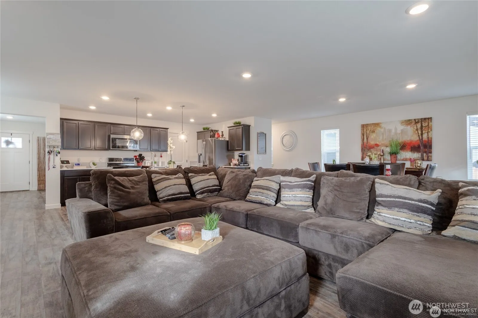 Beautiful 2021 Woodland Creek home offering a bright, open-concept layout with 4 bedrooms, loft, and 2.25 baths across 2,328 sq ft. A spacious entry leads into the large great room and a modern kitchen featuring quartz countertops, stainless steel appliances, a generous island, and walk-in pantry. All bedrooms are upstairs, including a primary suite with walk-in closet, double vanity, and separate shower. Additional features include white painted millwork, deck off the dining area, fully fenced and landscaped yard, tankless water heater, and 2-car garage. Fantastic location close to restaurants, shopping, schools, parks, and an easy commute to JBLM