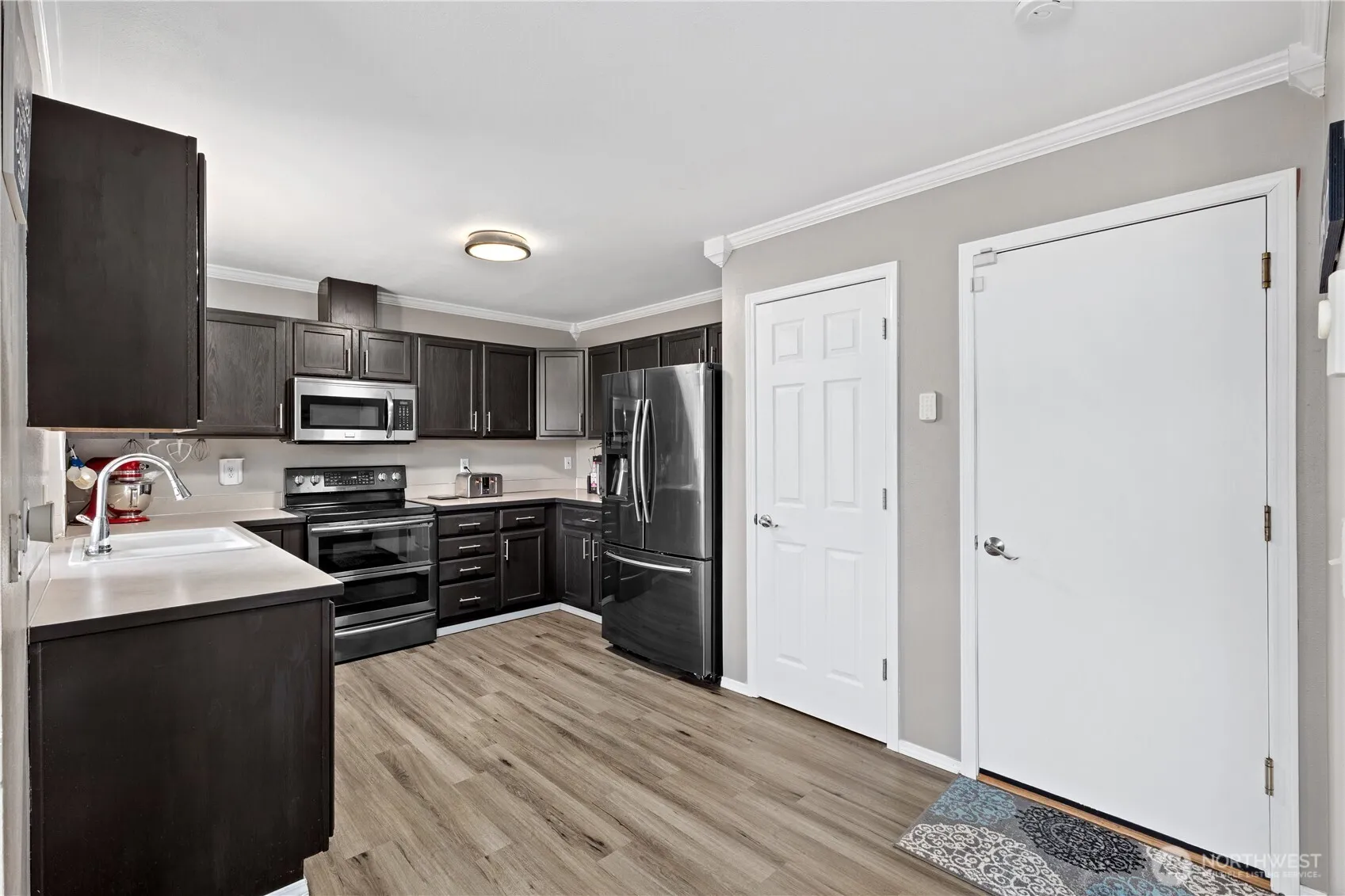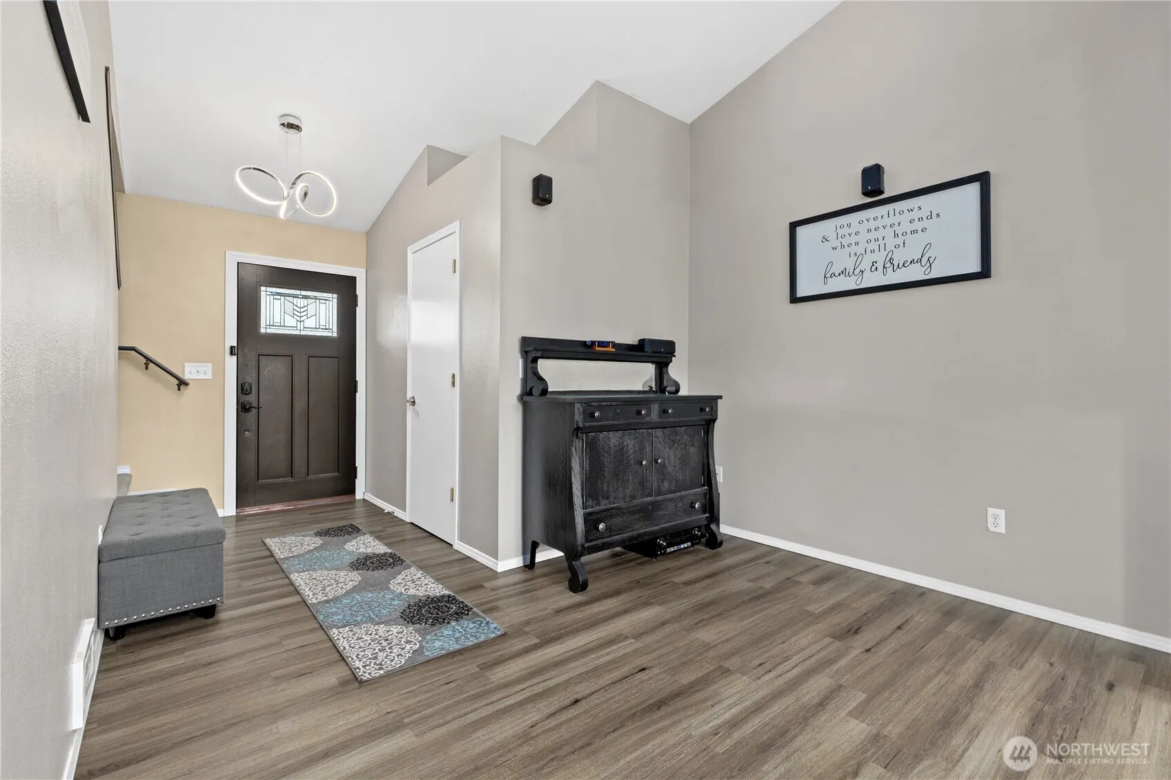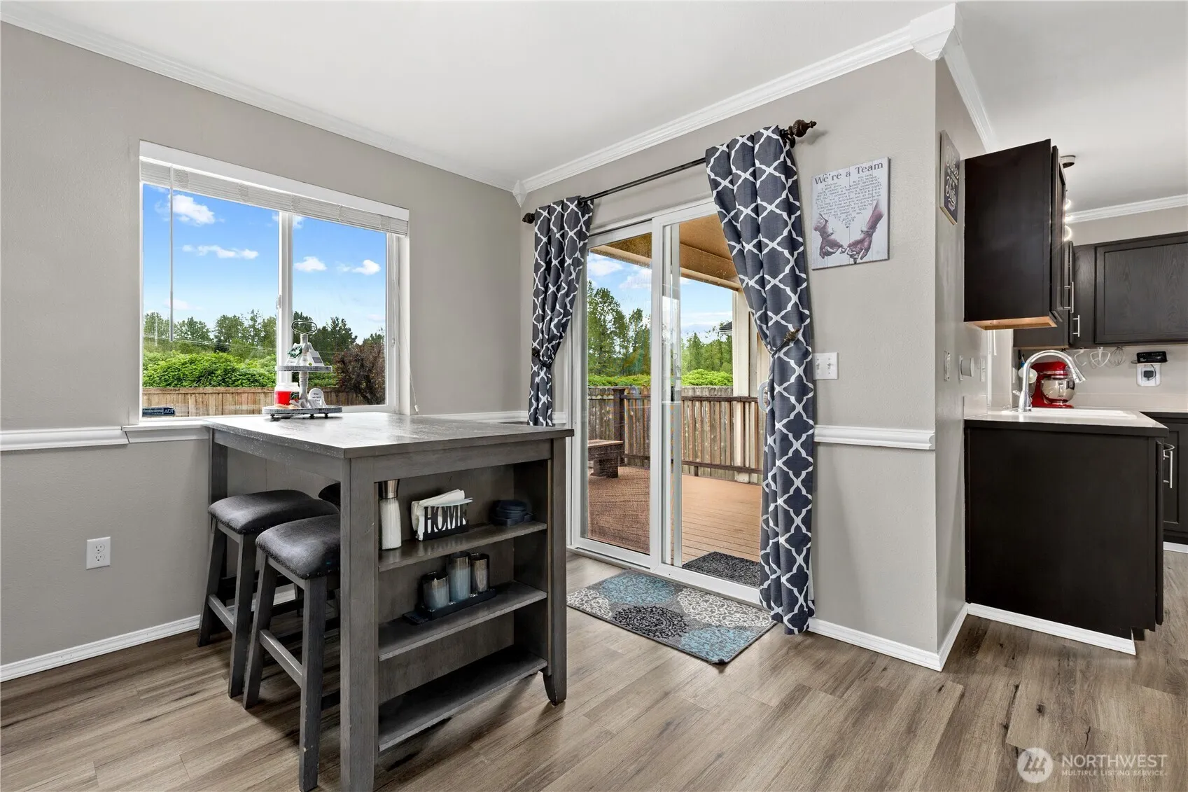 Welcome home to this beautifully updated property in a prime Sumner location! Featuring an open-concept layout with vaulted ceilings, this home offers seamless access to the entertainment trex decking and fully fenced, level backyard with fire pit—backing to open space and a walking trail to the river. Recent upgrades include LVP flooring throughout the main level, new carpet and pad upstairs, refreshed crawl space with new vapor barrier, updated fixtures, new front door, automatic garage door opener, and added ceiling fans. Kitchen boasts newer appliances, double oven, and ample pantry space. Enjoy a spacious primary suite, second-floor utility, and abundant storage. Located in the highly sought-after Sumner School District and just minutes to the Sounder train station. Move-in ready and packed with value!