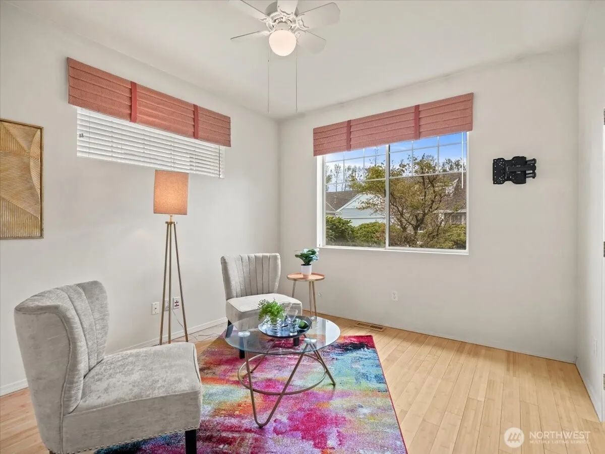 This charming one-story, stand-alone condo/home in the desirable Riverwalk community offers comfort, convenience, and thoughtful updates throughout. Bamboo wood flooring flows from the entry through the den, hallway, and kitchen, which features beautiful maple cabinetry and pantry. Enjoy cozy evenings by the gas fireplace with a built-in TV niche. Recent upgrades include a new gas furnace and A/C (2022). The full bath showcases maple cabinetry, a full tub and shower, plus a new quartz countertop and faucet. Spacious primary suite includes a walk-in closet, linen closet, double sinks, and private shower and toilet area. Step outside to a private backyard patio with a small lawn, complete with in-ground sprinklers both front and back yards. Located on a quiet cul-de-sac, this home also benefits from HOA dues of $380/month covering lawn maintenance, fence, roof, siding, sprinklers, and exterior insurance. This is a must see!