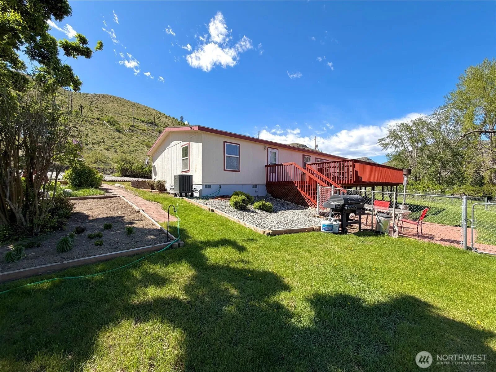 Malott – Okanogan River View! This well maintained double wide MH offers 3 beds/2 baths, 1,500+ sqft on over an acre. Inside, you’ll find the extensive living room w/an electric fireplace and a dining area adjacent to the kitchen. The updated kitchen is the heart of the home, with all new ss appliances, an island, pantry, abundant cabinetry, skylight & a cozy morning room; all perfectly positioned to capture serene river views right from your window! The primary suite is a true retreat; filled w/natural light & sliding door access to the 550+ sqft deck; ideal for enjoying peaceful mornings, stunning sunsets, and frequent visits from local wildlife. The en-suite bath w/double vanity, soaking tub, separate shower & walk-in closet. A utility room with backyard access. Recent updates including appliances, windows, heat pump, furnace, septic system, lighting fixtures and more, offer comfort and peace of mind. Step outside to your own private oasis featuring a variety of fruit trees. From nectarines, white donut peaches, Asian pears, cherries & apples. Plus garden beds and space to grow your own produce. Partially fenced backyard w/patio is ready for entertaining. Detached carport w/fully insulated shop provide excellent storage & workspace. Private well, additional well with water rights, RV hookup & direct access to the river. You can stroll down to fish & relax by the water. This unique property blends comfort, nature & privacy. Your slice of river view living!