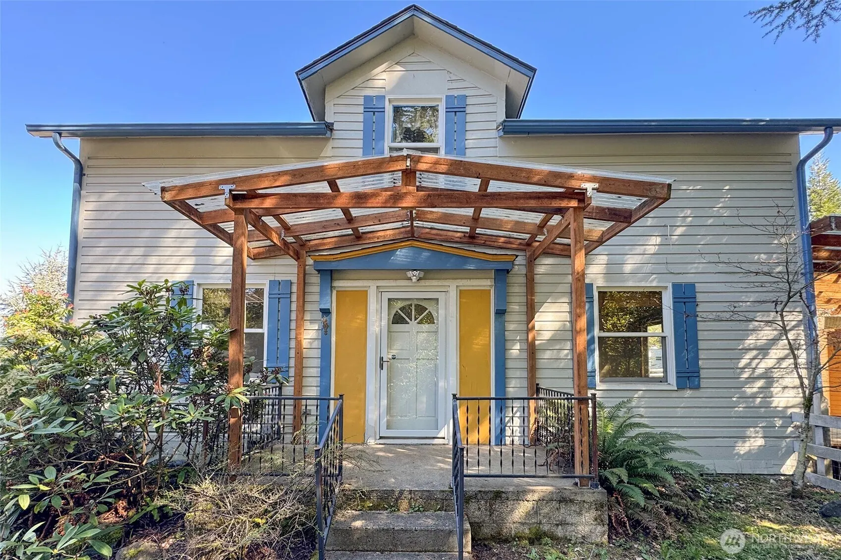 Welcome home to this charming 1900 farmhouse, perfectly situated on nearly 3 flat, fenced acres—ideal for pasture animals, hobby farming, or simply enjoying wide open space. Enter the inviting living room, where a wood stove with classic brick surround serves as a warm and welcoming focal point. Warm Maple flooring and classic wood-clad windows throughout. The kitchen features tile countertops and coordinating backsplash, complemented by rich wood cabinetry, glass-front display cabinets, and a charming wet bar with decorative sink. Enjoy the convenience of a main-level bedroom, with two additional bedrooms located on the second floor. Water views from the second floor North bedroom. Spacious mudroom with abundant storage and generous counter space—perfect for everyday functionality. The home has been thoughtfully updated over the years, while preserving its timeless appeal. Outdoors, enjoy a detached two-car garage complete with a wine cellar, a spacious 30′ x 60′ heated shop ideal for projects or animals, and a newly installed 28 X 27 carport for added convenience.