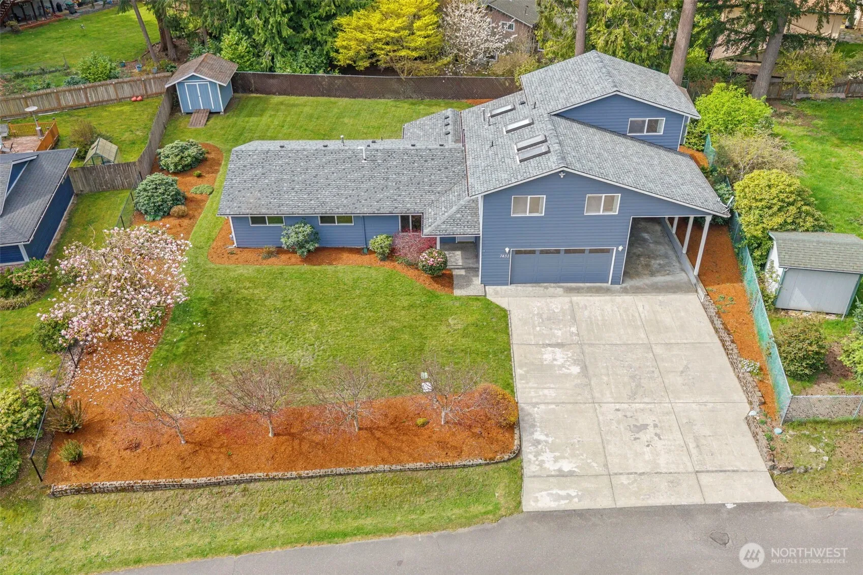 Welcome home to the highly sought-after CK Esquire Hills neighborhood. This spacious 4-bedroom, 2.75-bath home offers a flexible and functional floor plan, including two primary suites, one (Upstairs) featuring a jetted tub and walk-in closet. Enjoy formal living and dining rooms, vaulted ceilings, and a cozy gas fireplace. The kitchen offers barstool seating and comes complete with range/oven, dishwasher, and refrigerator.The family room features a gas stove, and the loft provides the perfect work-from-home space with built-in storage. A large garage offers additional storage, along with covered RV or boat parking. The mature landscaping includes beautiful trees, garden space, and two storage sheds. Ideally located in Central Kitsap with easy access to Esquire Hills Elementary, shopping, and public transportation. Convenient to PSNS, Bangor, Keyport, and Kitsap ferries.