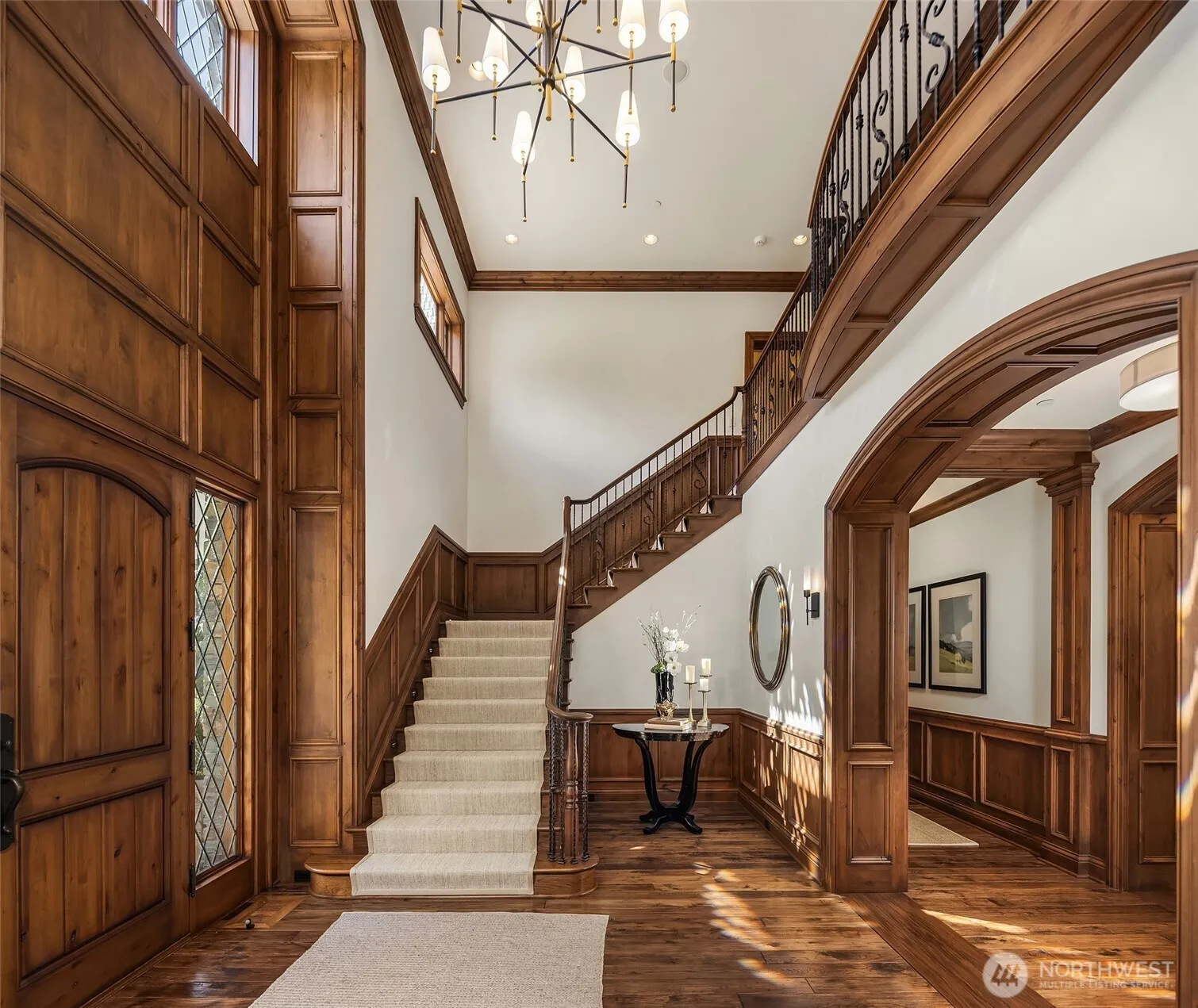 A private resort-style estate designed for modern living, where elevated design and effortless flow define how life is experienced every day. Gated and private on 2.14 acres, this nearly 9,500 SQ FT home has been thoughtfully re-envisioned with fresh interior and exterior paint, modern lighting, and a refined, contemporary aesthetic with seamless indoor-outdoor connection. The main level is designed for both daily living and elevated entertaining, featuring expansive living and dining spaces, a chef’s kitchen with professional-grade appliances and separate catering kitchen, and a main-level primary suite with spa-inspired bath and direct access to private outdoor spaces. Upstairs, three ensuite bedrooms and a versatile flex space support guests, work, or recreation. The lower level includes a dedicated home theater and climate-controlled wine storage. The grounds are designed as a private retreat, with covered and open-air living areas, a pool and spa, sport court, and beautifully landscaped surroundings—creating a year-round indoor-outdoor lifestyle. A detached workshop, pool house, and over 3,300 SQ FT of garage and storage provide exceptional functionality. Additional features include radiant heat, air conditioning, generator, and integrated security and technology systems. A rare opportunity to experience a private, resort-inspired property in a premier Sammamish location.