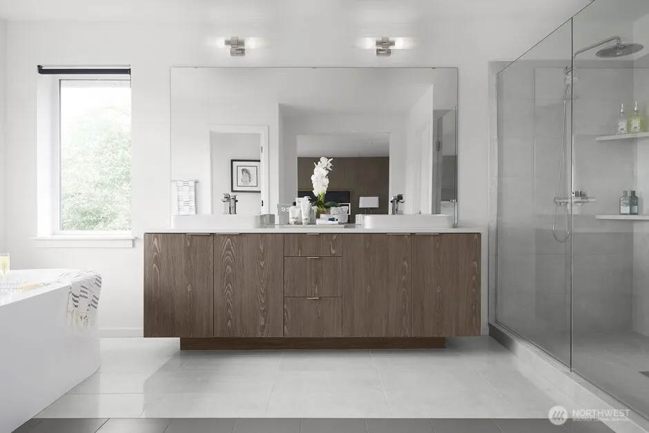 The Indigo V5 by MainVue Homes at Eaglemont is a basement home design with all-season allure. At the entrance, the Home Office is set away from main living areas for private work or study. Down the Foyer, enter the Great Room where an abundance of natural light flows via wall-height sliding glad doors that open into the Signature Outdoor Room. In the Gourmet Kitchen enjoy 3cm Quartz countertops, KitchenAid appliances and a Butler’s Pantry with a unique window splashback and direct access to the Garage. Downstairs find a Recreation Room, Storage and Covered Patio. Upstairs find three secondary bedrooms, Leisure Room and luxurious Grand Suite with expansive walk-in Dressing Room, a frameless walk-in shower and designer free-standing tub.