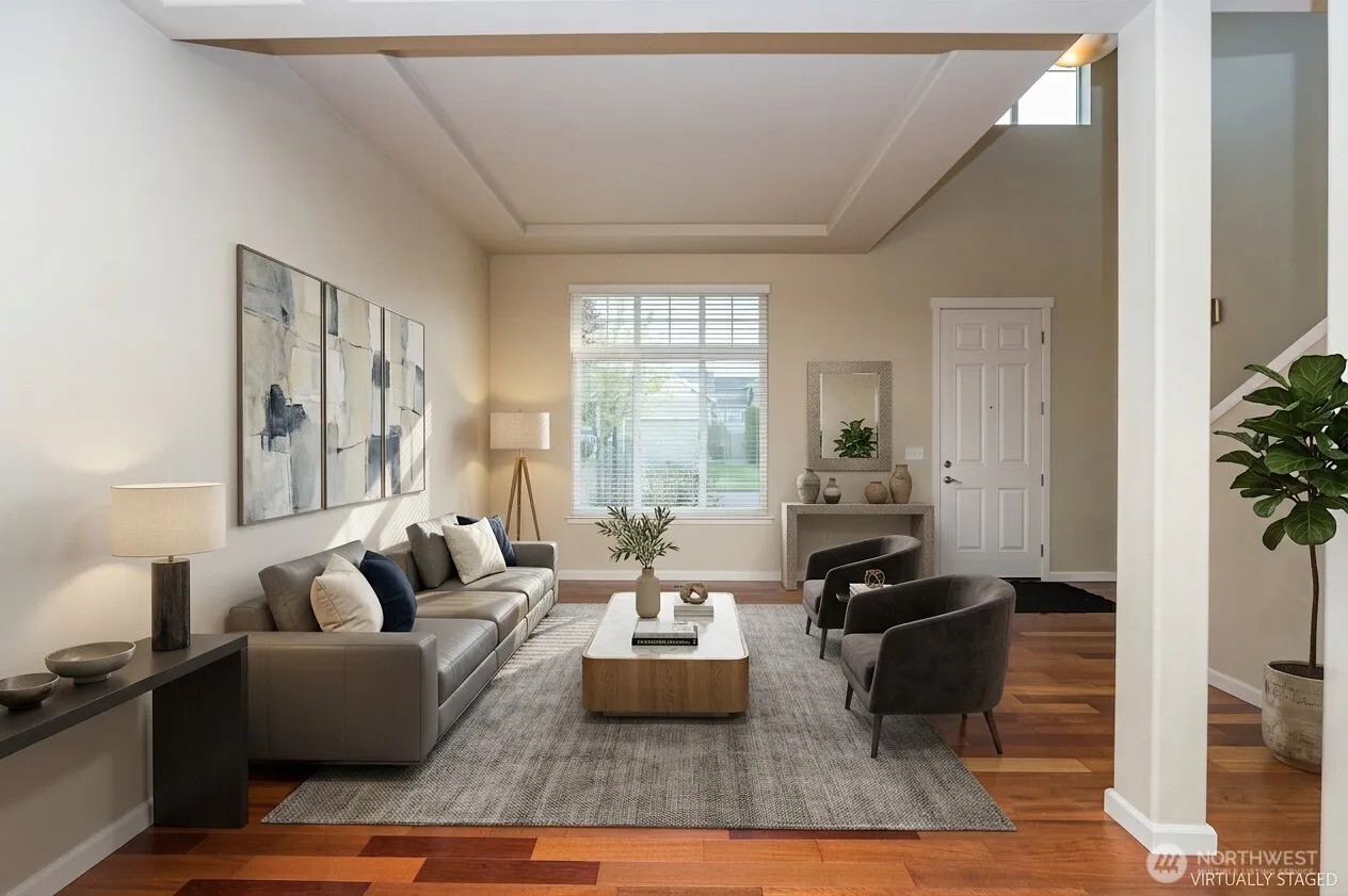 Ready for you to move in! This 2224 sq ft home with 4 bed/2.5 bath, has a brand new roof and water heater, freshly painted bedrooms with new ceiling fans, and gas furnace has been inspected and serviced. All bedrooms & laundry room upper level. Hardwood flooring throughout the main floor. Large open family room w/gas fireplace that flows into kitchen with eating space. 9′ ceiling in living room, coffered ceiling in dining area. All appliances stay. Enjoy privacy of fenced back yard that overlooks a pond and beautiful sunsets New epoxy flooring in the garage. Convenient location to enjoy community park, access to shopping, schools and JBLM. Close proximity to the Chehalis Trail.