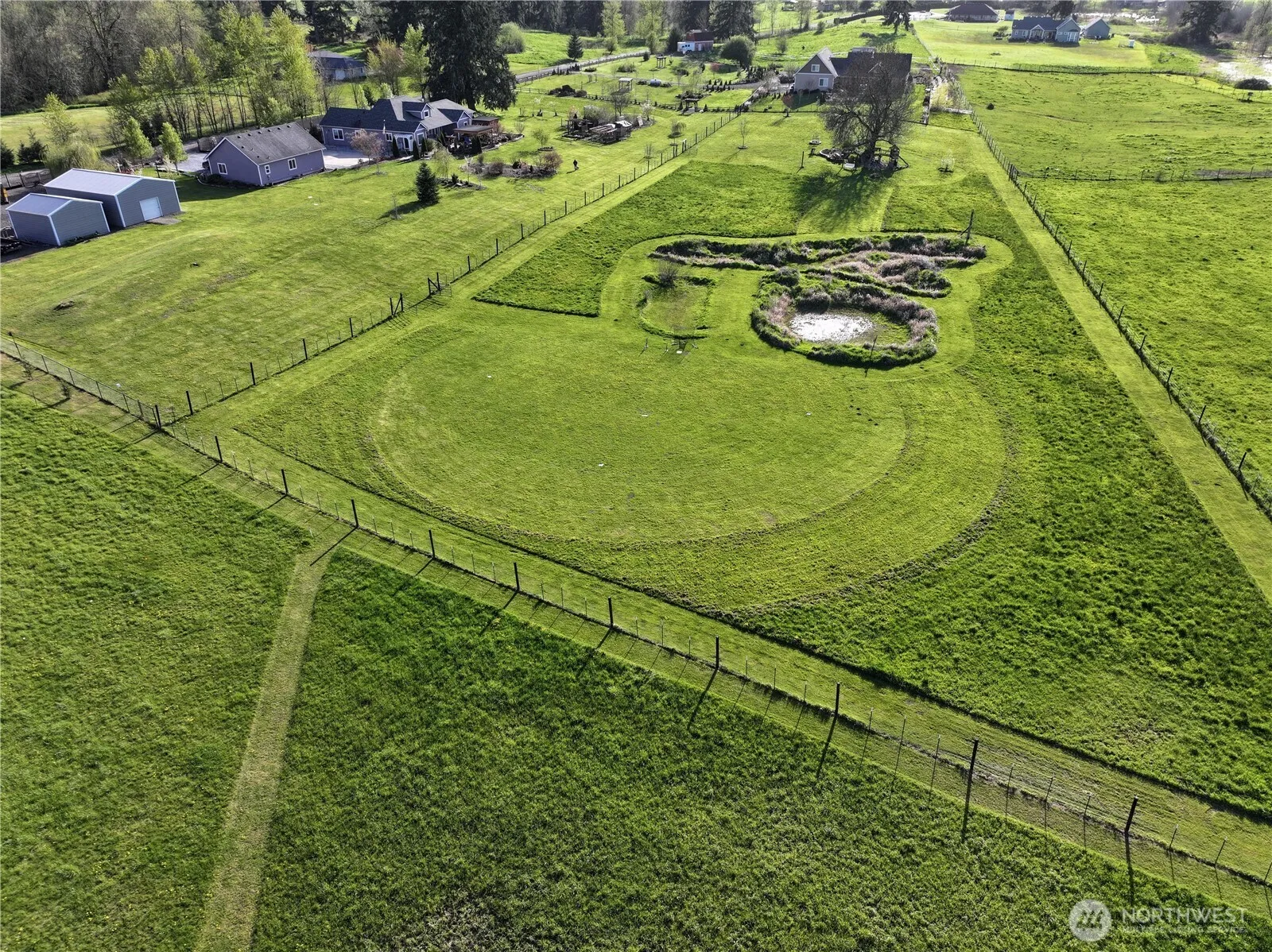 Amazing private estate w/ detached garage & 900 sf apartment. Mt. Rainier view on usable acreage! Property features two dual gated entries, fully walled & fenced for security & privacy, sport court w/ pickleball & basketball, zip line, fire pit w/ outdoor movie screen, gas BBQ hookup, hot tub, year-round LED lighting, & multiple covered gazebos—perfect for entertaining. Chicken coop & large garden space near the orchard w/ pear, apple, walnut, apricot, cherry, & berries. Fenced/divided pastures w/ seasonal water feature ideal for animals & livestock. Mature landscaping w/ vibrant flowers & trees makes this property shine in spring & summer! Main home offers hardwood, tile & carpet flooring, propane fireplace, heat pump, media room, built-ins, crown molding, & French doors. Chef’s kitchen w/ granite counters, tile backsplash, stainless steel appliances, & a massive island! The expansive great room flows from the kitchen to large dining & main living room. Utility room w/ sink & cabinetry for storage. The designer primary suite features a showpiece walk-in closet w/ marble floors, custom built-ins, rotating shoe storage, & jewelry space. Spa-like bath w/ large walk-in tile shower & dual vanity. Apt incl 2 bed/1 bath w/ full kitchen, garage, separate metered panel, great for rental or multi-gen living. Additional features: RV coverage w/ power & septic. 2nd garage offers space for toys/heavy equipment. Turn-key lifestyle property built for comfort, recreation, & flexibility!