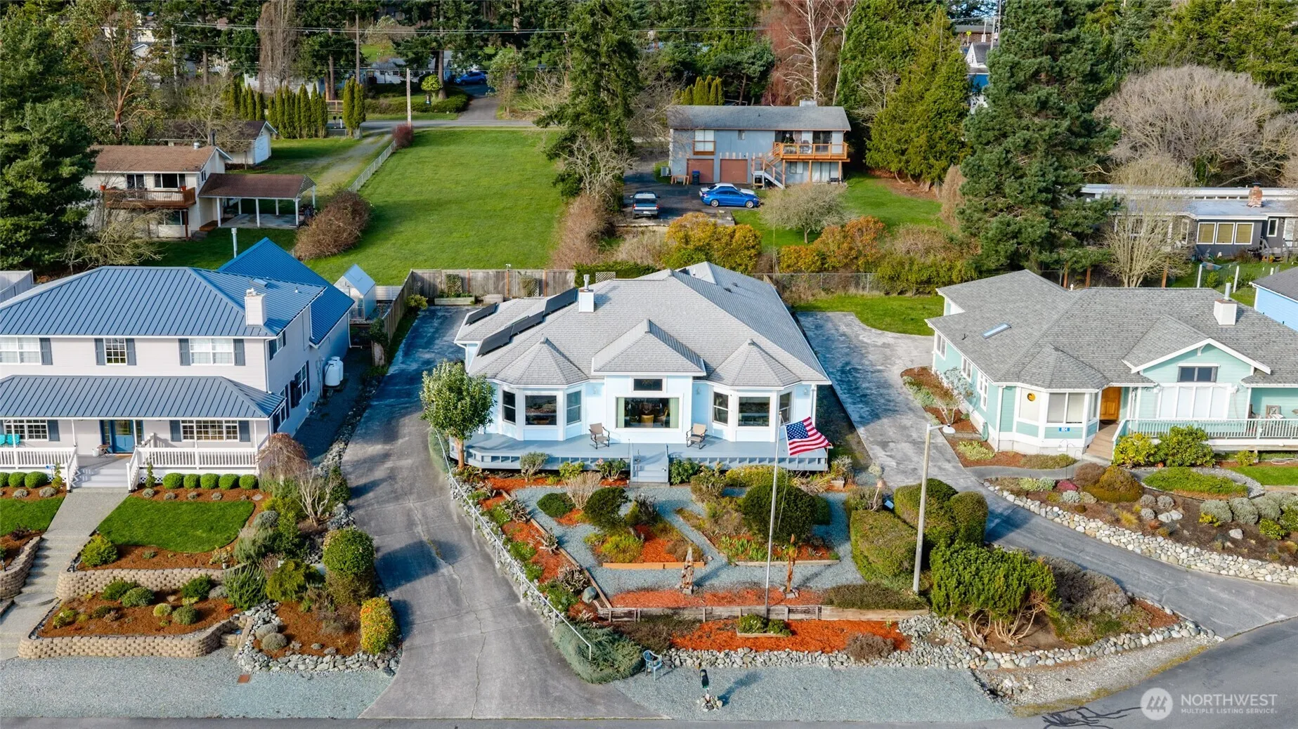 Enjoy single-level living in this thoughtfully designed 3-bedroom, 2-bath home in the heart of Coupeville. ADA-accessible features provide ease and comfort throughout, while triple-pane windows, solar panels, tankless water heater, heat pump and ac and a whole-house generator offer efficiency and peace of mind year-round. The open layout creates a bright, welcoming flow with room to gather, cook, and unwind. Large windows frame views overlooking the town, adding a sense of connection to the community while maintaining privacy. All bedrooms are generously sized, including a well-appointed primary suite with its own bath. The one-story design ensures smooth movement throughout the home, and the upgraded systems make daily living simple and reliable. Beautifully landscaped low maintenance yard. Located close to historic downtown Coupeville, shops, dining, and waterfront trails, this home blends convenience, comfort, and modern sustainability in a serene Whidbey Island setting. Your dream house is waiting for you! Seller flooring credit of $15,000 with full price offer.