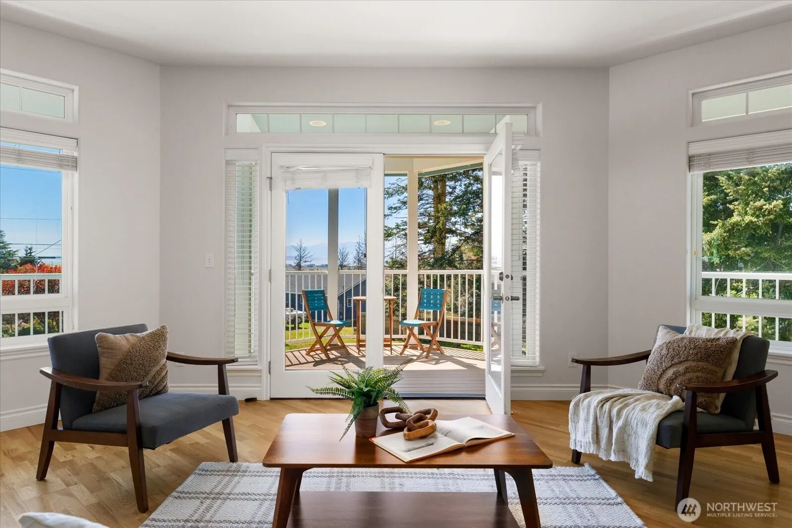 Welcome to Admirals Cove! Enjoy sweeping views of Admiralty Inlet, Olympic Mountains, busy shipping lanes, and unforgettable sunsets, plus front-row seats to the Keystone Ferry from the comfort of your living room in this beautifully crafted home. Ideally located just five minutes south of Coupeville, Whidbey Health Medical Center, and Ebey’s Landing National Historical Reserve. 3 minutes from Historical Fort Casey and all of the walking trails, and enjoy a meal at the water view restaurant Callans. This 1500 sq ft home offers both the convenience and tranquility. Thoughtfully designed with quality in mind, featuring granite countertops, hardwood floors, rich hickory cabinetry, and a wraparound Trex deck perfect for soaking in the views. Recently refreshed with new interior paint throughout and brand-new carpet in all bedrooms, offering a truly move-in ready experience. Large primary suite with an office or flex space with double doors and large bathroom and walk-in closet. Enjoy the water and mountain view from the covered deck spa. Admirals Cove has the amenities of a private beach, clubhouse, pool and park.