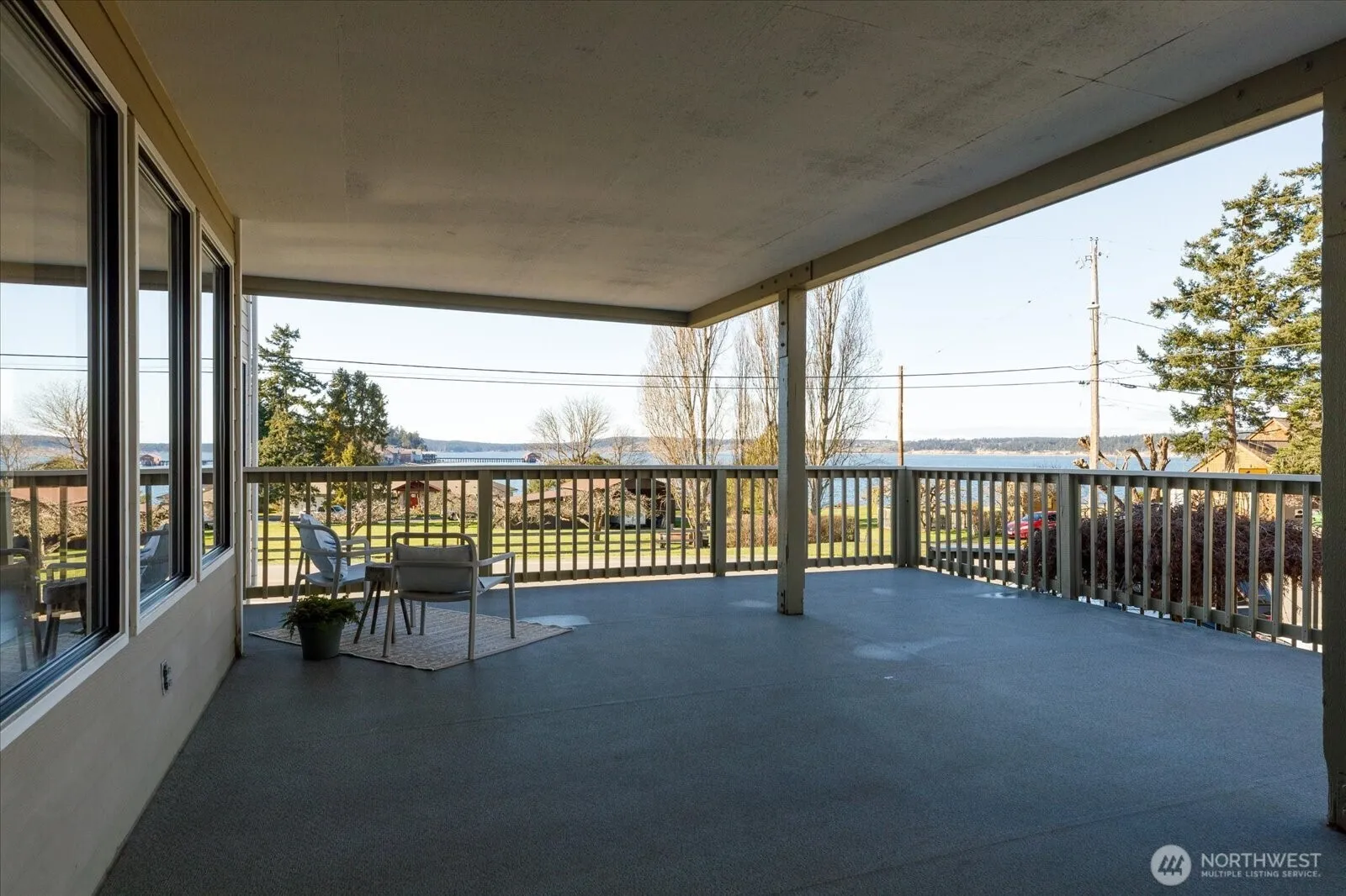 Stunning views of Penn Cove and The Wharf from this lovely 2 bed, 2 bath condo in the heart of Coupeville. Leave your worries behind and immerse yourself in our island lifestyle. Huge deck to enjoy the warmer months, with westerly views – witness our spectacular Whidbey sunsets, while sipping your favorite beverage. Nearly 1400sf of updated living space in this 4-plex. An easy walk to Front St on footpath and sidewalks, close to the boat launch, and nestled in small town life. Interior feels expansive with the same stunning view as on deck, with a very comfortable flow to the interior space. The condo boasts 2 bedrooms, each with ensuite full baths, new radiant wall heaters, plus a covered back deck. Updated flooring & freshly painted bedrooms, too. So many careful upgrades over past 5 years, including 4-circuit generator transfer panel/power backup system for those inevitable power outages, lighting & plumbing fixture updates, LR wall heaters, standard sized W/D combo, refrig w/ice maker, newer range & D/W, ceiling fans in both bedrooms w/remotes. Covered, assigned parking & secure storage room below.