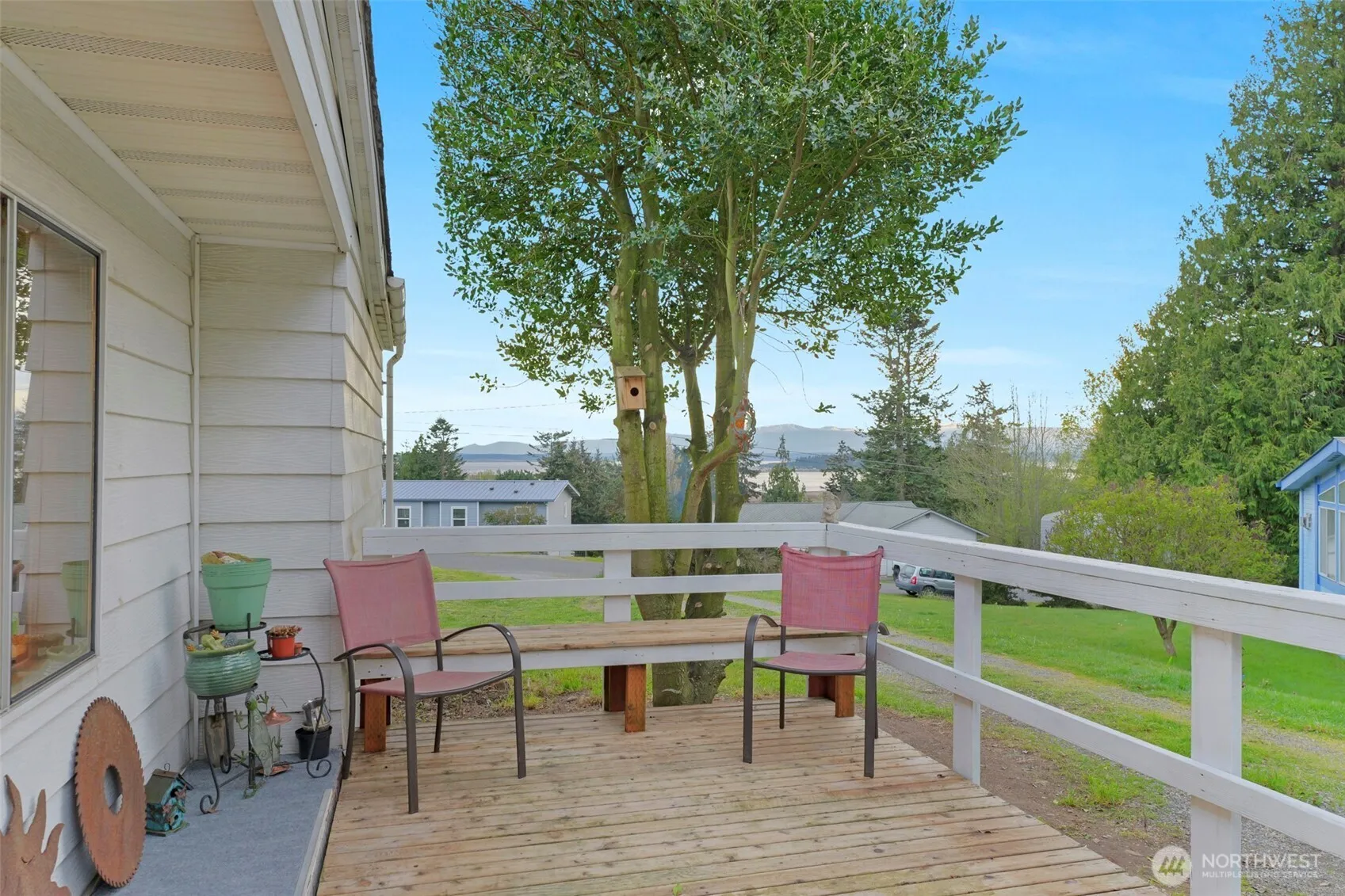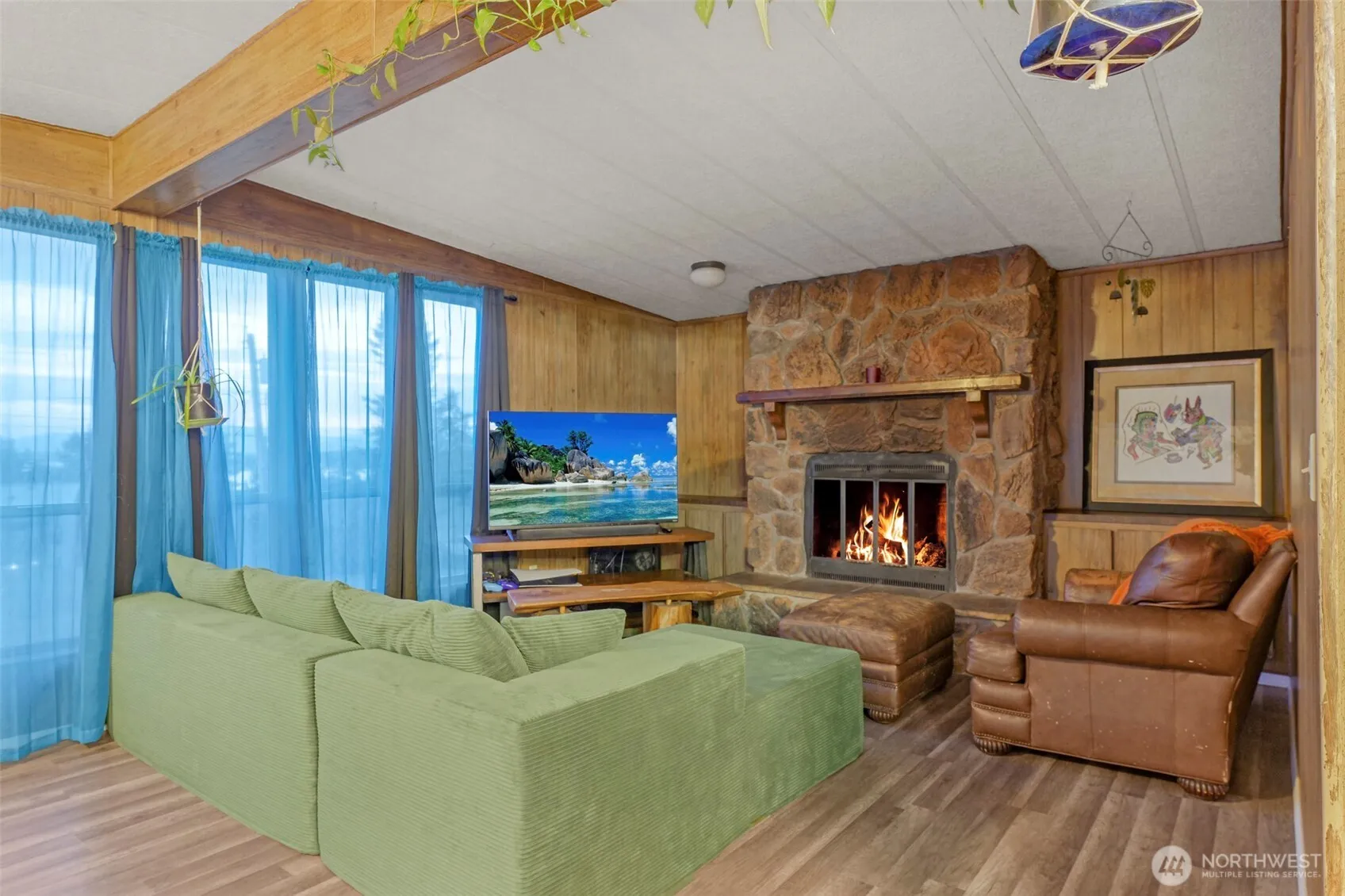 Welcome to this beautifully maintained Whidbey Island retreat in Crockett Lake Estates, set on a half acre surrounded by oak, cedar, and birch trees with stunning southwest views of Hurricane Ridge, the Coupeville Ferry, and passing shipping lanes. A major highlight of the home is the brand new heat pump system, a $12,000 upgrade that provides efficient heating and air conditioning for year round comfort. This modern system replaced the previous furnace and delivers both performance and energy efficiency. Inside, enjoy a clean, low maintenance interior with no carpet throughout and a spacious, versatile layout. The main living area features a striking rock fireplace with built-in cabinetry, while a separate family room lined with six bay windows captures breathtaking water and mountain views. The kitchen offers an eating peninsula, bar seating, and under-sink water filtration, alongside a dining area with a built-in hutch. The spacious primary suite includes a private ensuite bath, and multiple living areas provide flexibility for everyday living and entertaining. Additional highlights include newer roof, appliances, updated water systems, abundant storage, porches, RV hookup, garden potential, and a recently serviced septic system. Utilities include Astound internet, PSE electric, and Island Disposal, with a shared well professionally managed for convenience. Come find your Whidbey.