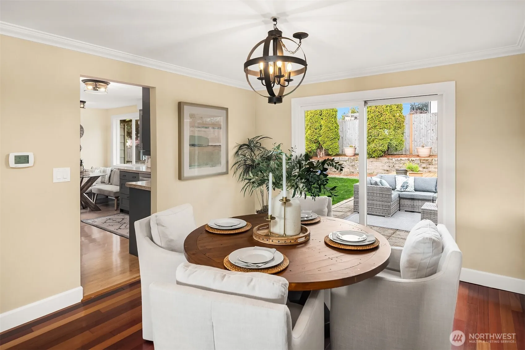 Imagine a life with slow mornings, drinking coffee as the fog lifts and taking short walks to the bluffs. Easy date nights up the hill at Blackbird, grabbing a pint at The Cabin or making a special dinner from your new favorite high-end grocery store, Richmond Beach Foods. End your days on your private deck as the sky turns pink over the Sound, entertaining on the huge raised deck, eating fresh figs off the tree and generally just relaxing into the quiet of your sleepy street that wraps around this little Richmond Beach pocket. With warm cherry wood floors underfoot and the glow of a gas fireplace, the open living and dining flow invites conversation, connection, and camaraderie. A rare layout with four bedrooms upstairs, escape to the private deck in the primary bedroom for the golden hour. The lower level feels like a comforting bonus — a media room, a fifth bedroom, and a full second kitchen and laundry that invites options and flexibility. With gas heat, AC and a two-car garage with workbench and storage, this home checks the boxes with all the perks of seaside living.